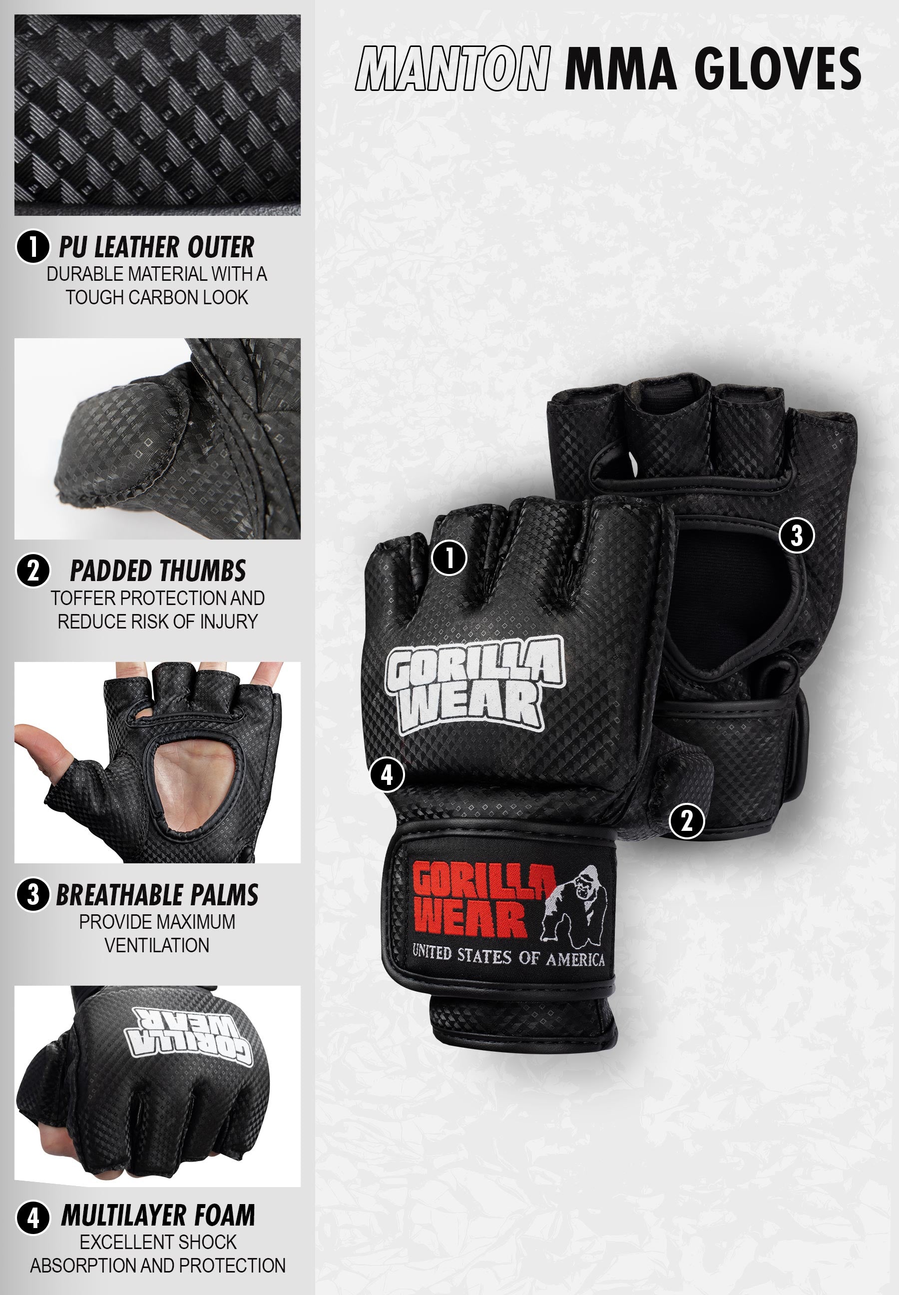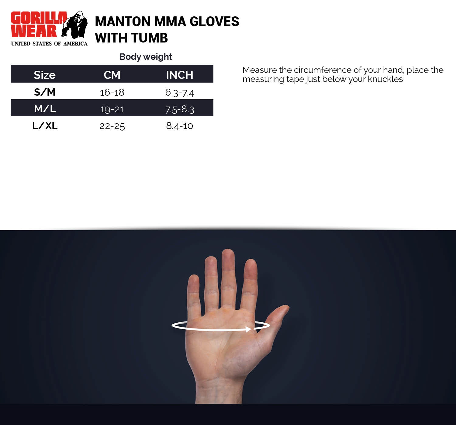 The Gorilla Wear Manton MMA Gloves are here to deliver you control, strength and optimal protection. Innovative design for increased finger flexibility and increased protection due to Attached Thumb Padding. Suitable for grappling and mitt training. Full Wrist Wrap delivers you superior support around your wrist and locks your wrist to increase the impact of your punches. The glove construction comes with a Curved Striking Surface which enhances your power and avoids the risk of getting injured. Our Fighting Equipment is the result of a strong collaboration with professional MMA fighters: Cody Garbrandt, Erko Jun, and Alexander Gustafsson. Getting yourself a pair of Manton MMA Gloves means you are choosing to fight with control, power, and optimal protection.