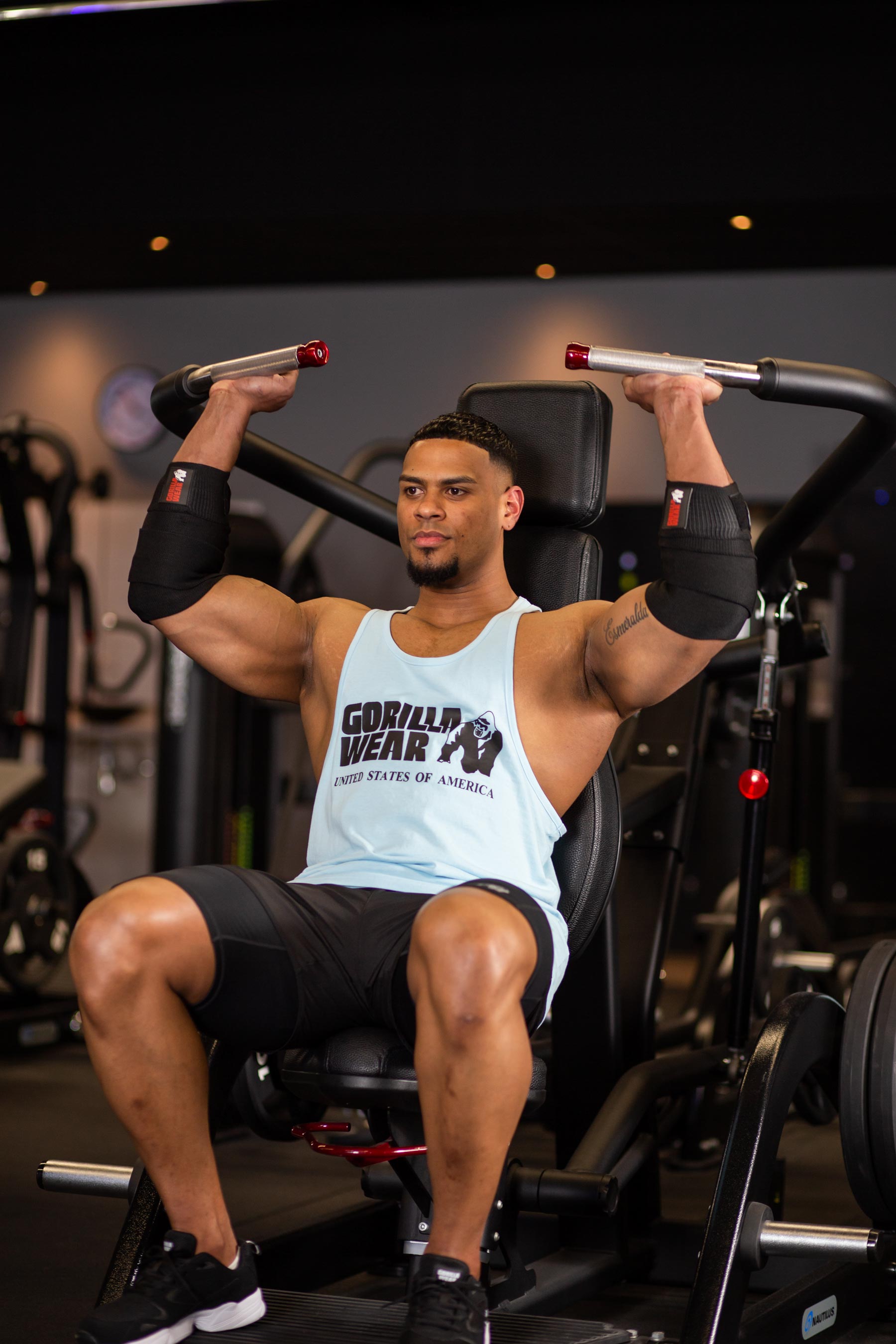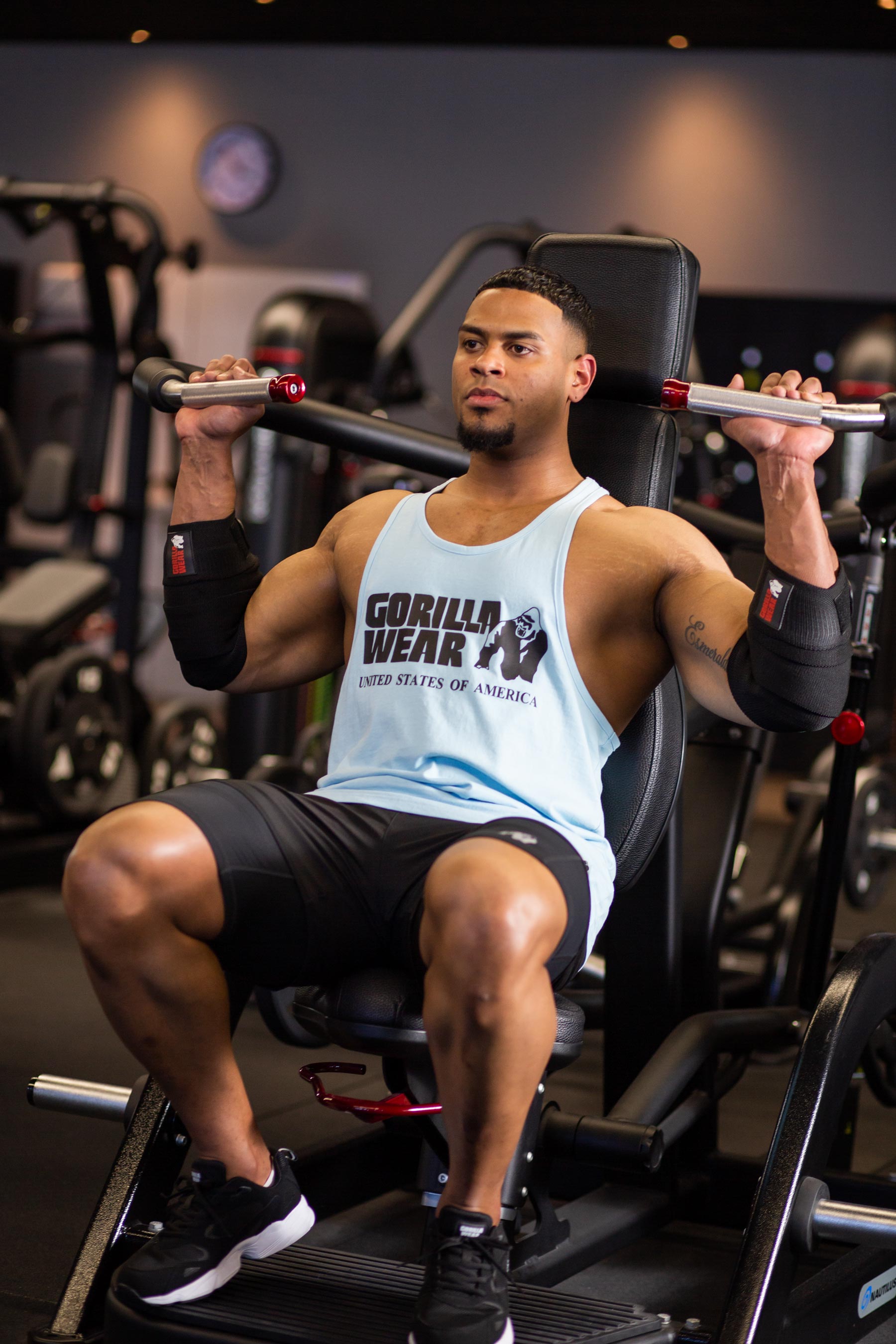 Gorilla Wear's Elbow Wraps are crafted to provide superior protection and support for your elbows. Whether you're an experienced weightlifter or starting out, these Elbow Wraps are ideal for those looking to prevent injury and set new benchmarks. The wraps feature a large loop that your arm fits through, making them easy to put on. The Velcro closure lets you control how tightly you wrap them around your elbow. They can be utilized for multiple exercises, including Bench Press and Overhead Press. Sold in pairs and available in various lengths, Elbow Wraps are suitable for all types of athletes.
