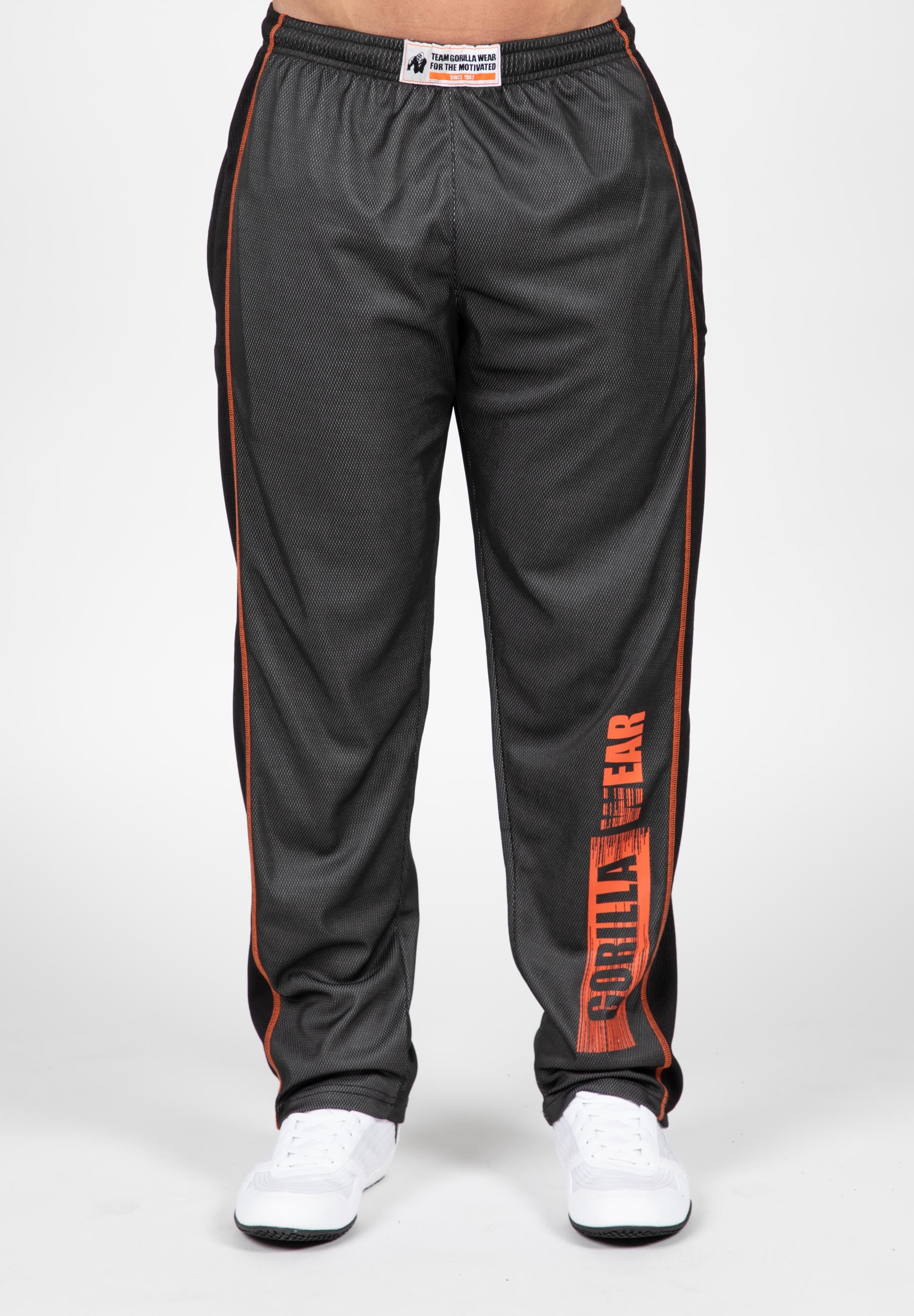 Our lightweight Wallace Mesh Pants are designed for bodybuilders who appreciate a classic touch. These loose-fit bottoms boast an old-school look as timeless as your dedication to fitness. The Wallace Mesh Pants are made of polyester mesh and feature striking side seams, providing a rugged yet stylish aesthetic. The large shin logo proudly showcases your commitment to the Gorilla Wear lifestyle. Meant for intense workouts, offering unrestricted movement and breathability. If you prefer to wear shorts while working out, check out the Wallace Mesh Shorts.