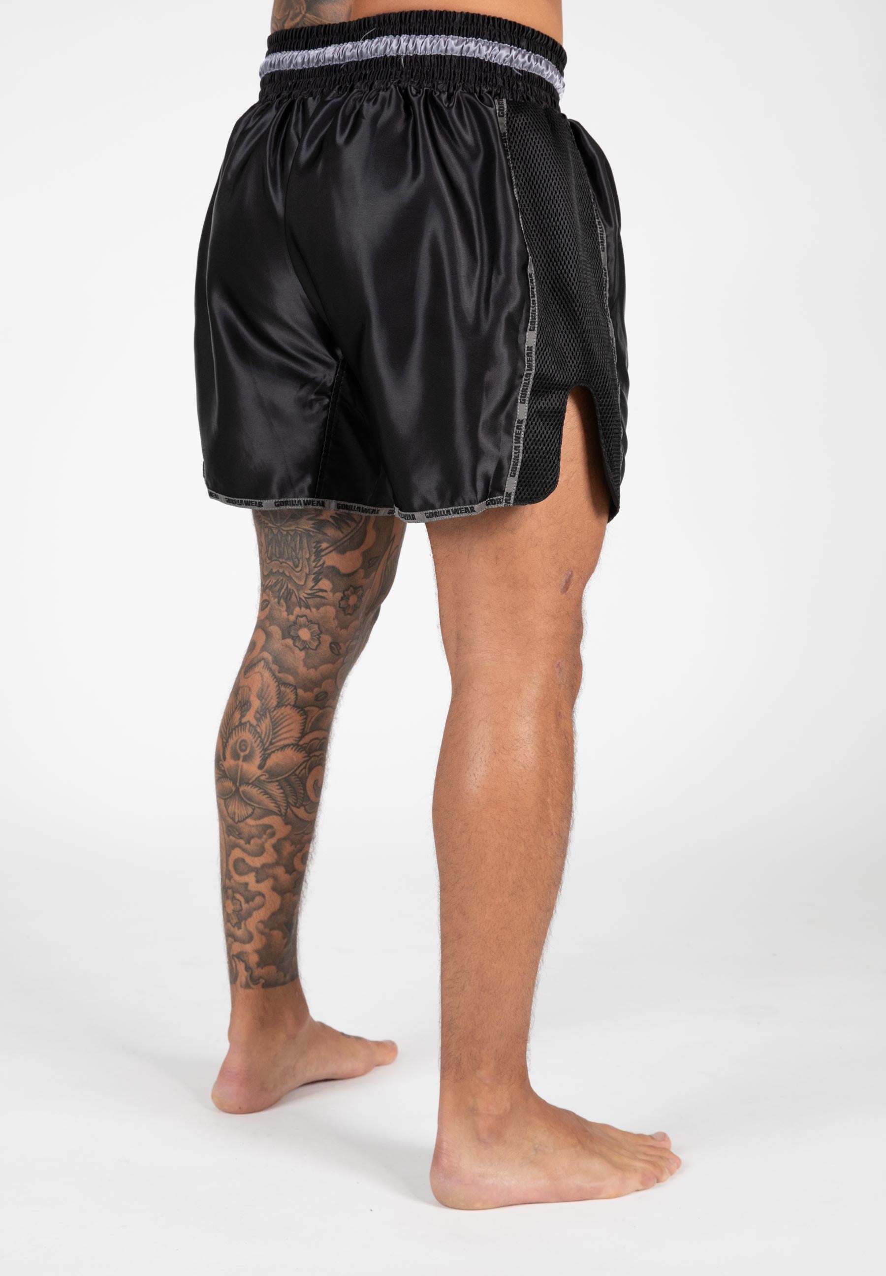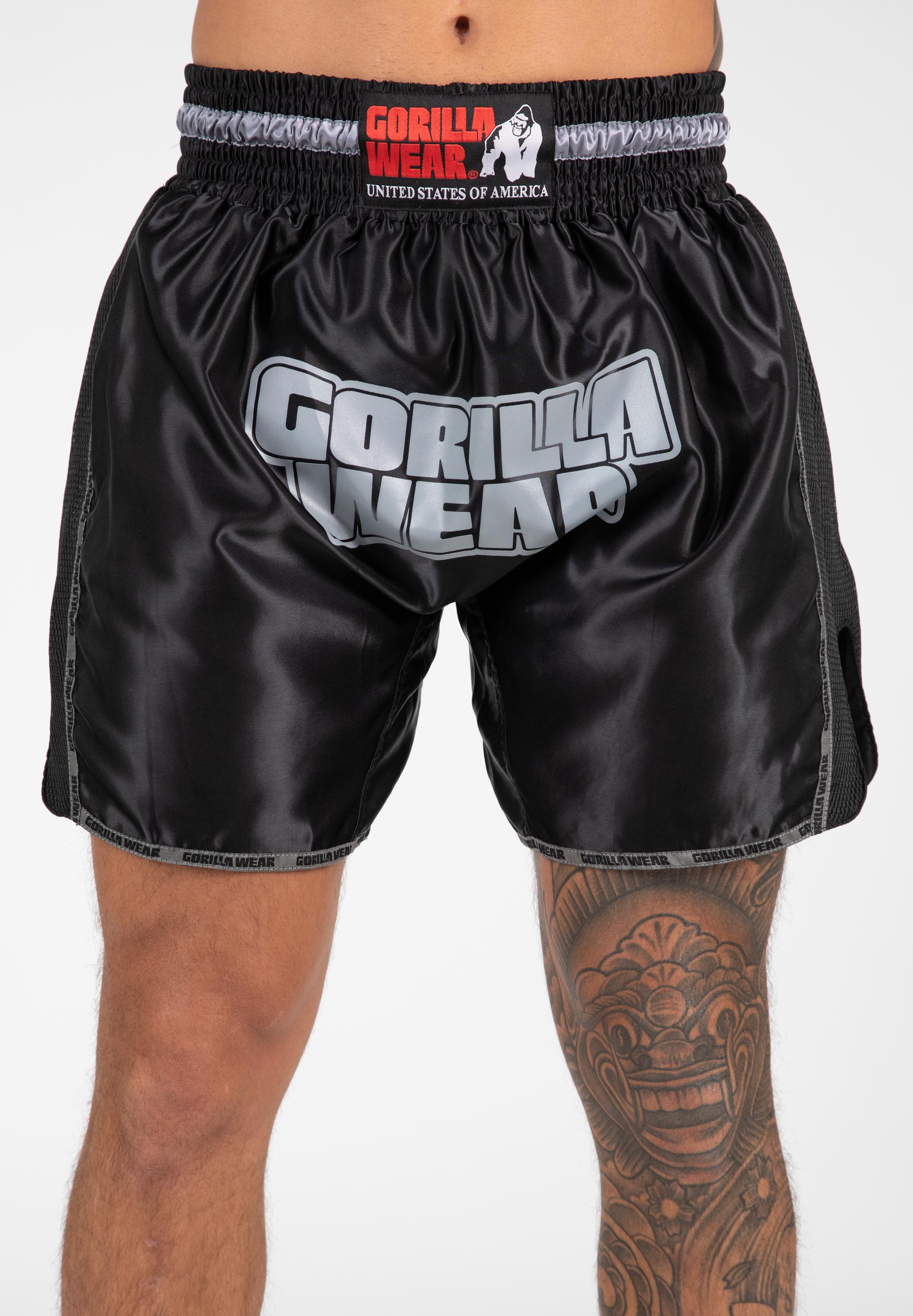 The unisex Piru Muay Thai Shorts will help you get the most out of your match or training. These shorts are suitable for various martial arts, such as Muay Thai and Kickboxing. The lightweight fabrics and side slits allow you to enjoy total freedom of movement. The wide elastic waistband provides great support while fighting and can be tightened or loosened. The shorts feature a large Gorilla Wear logo on the front and an embroidered logo on the waistband. Available in Black and White/Black.