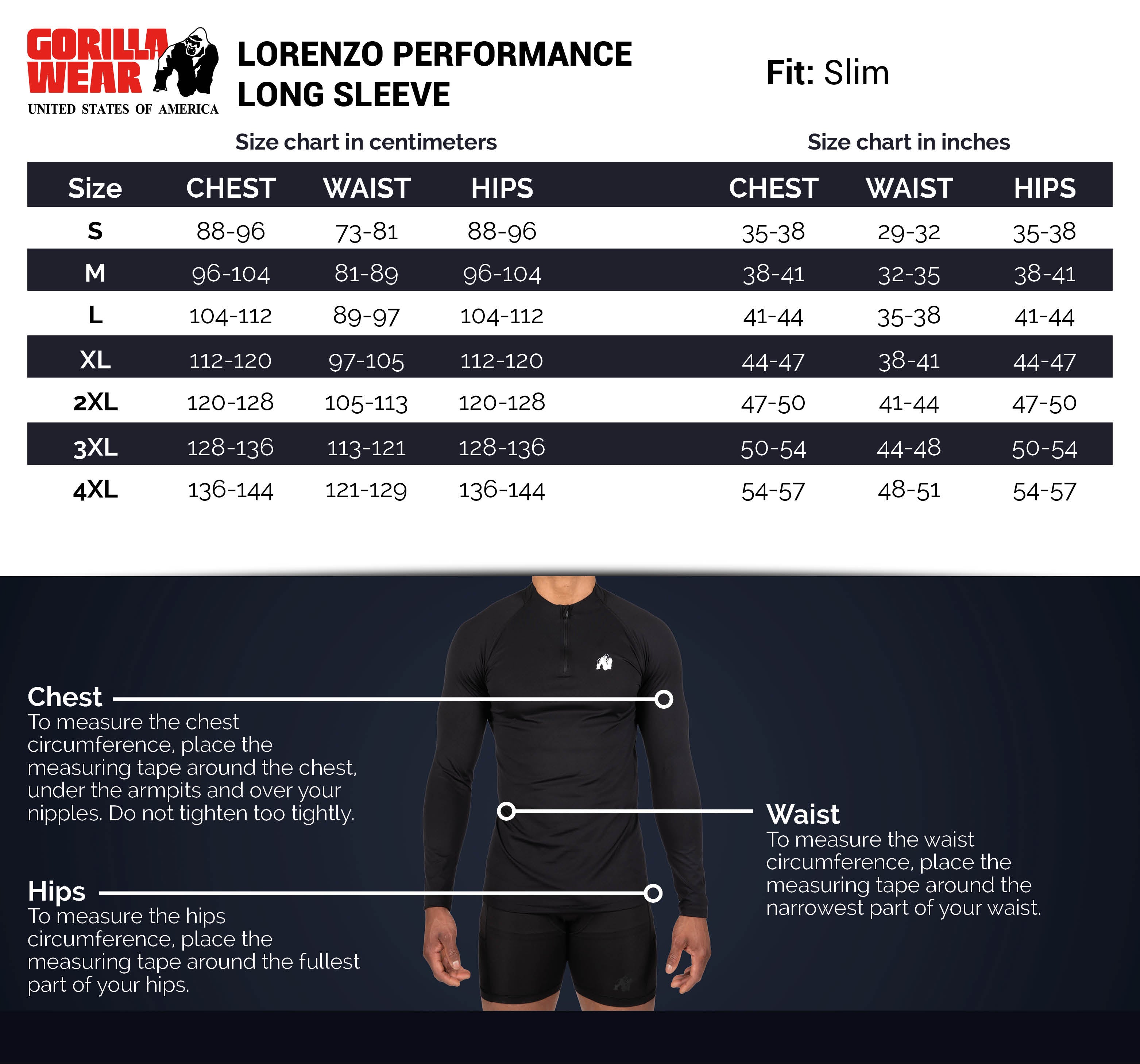 Take on any challenge with the Lorenzo Performance Long Sleeve. This long sleeve is designed to cover you during both indoor gym workouts and outdoor training sessions. The long sleeve is made of stretchy fabrics and has raglan sleeves, giving you enough room to move during workouts. The Lorenzo Performance Long Sleeve also keeps your body warm when you’re outside. The sweat-wicking top has a slim fit and accentuates your physique. The shoulders and sides are mesh which provides extra ventilation. Thanks to the thumbholes, the sleeves stay in place. Finished with Gorilla Wear branding on both the chest and arm. Complete your outfit with our men's tights.