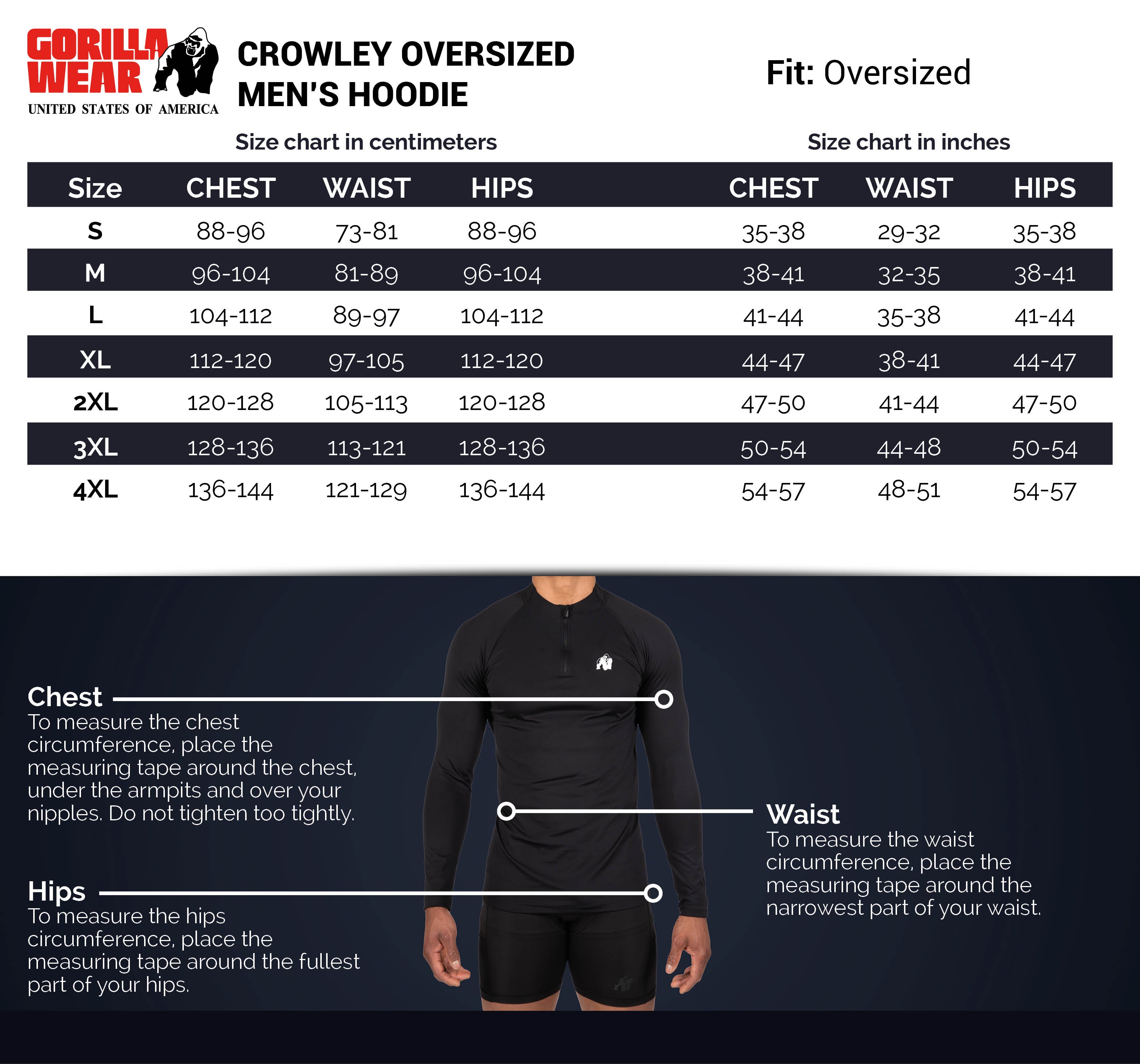 We designed the Crowley Oversized Hoodie under the guise of ‘Twinning is Winning’. This comfortable hoodie is available as a men's and a women's version. Now you can match the same Gorilla Wear outfit with your significant other, friends, siblings, or anyone else. The Crowley has an oversized fit with sloping shoulders which feels relaxed to wear. The logo on the chest is embossed, creating an amazing 3D effect. It is made of a blend of high-quality fabrics. Trust us, the Crowley Oversized Hoodie is really not to be missed in your closet!
