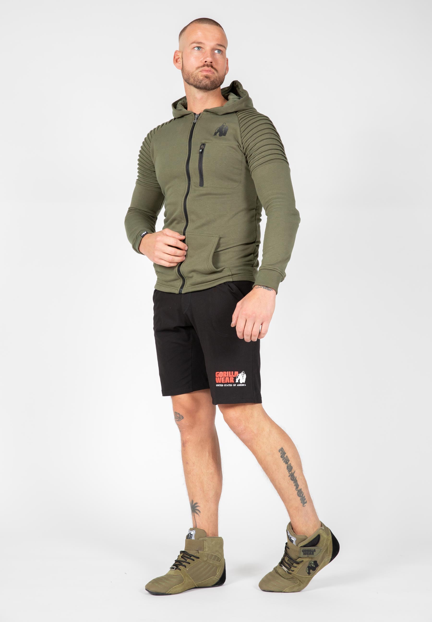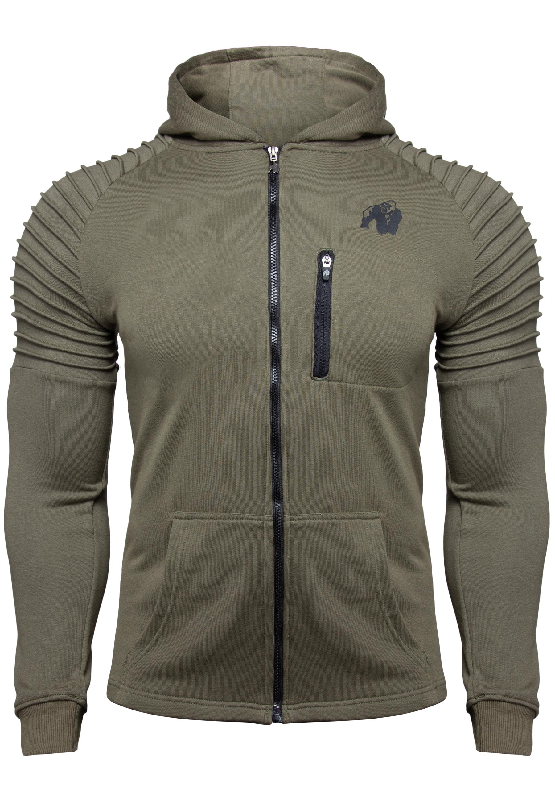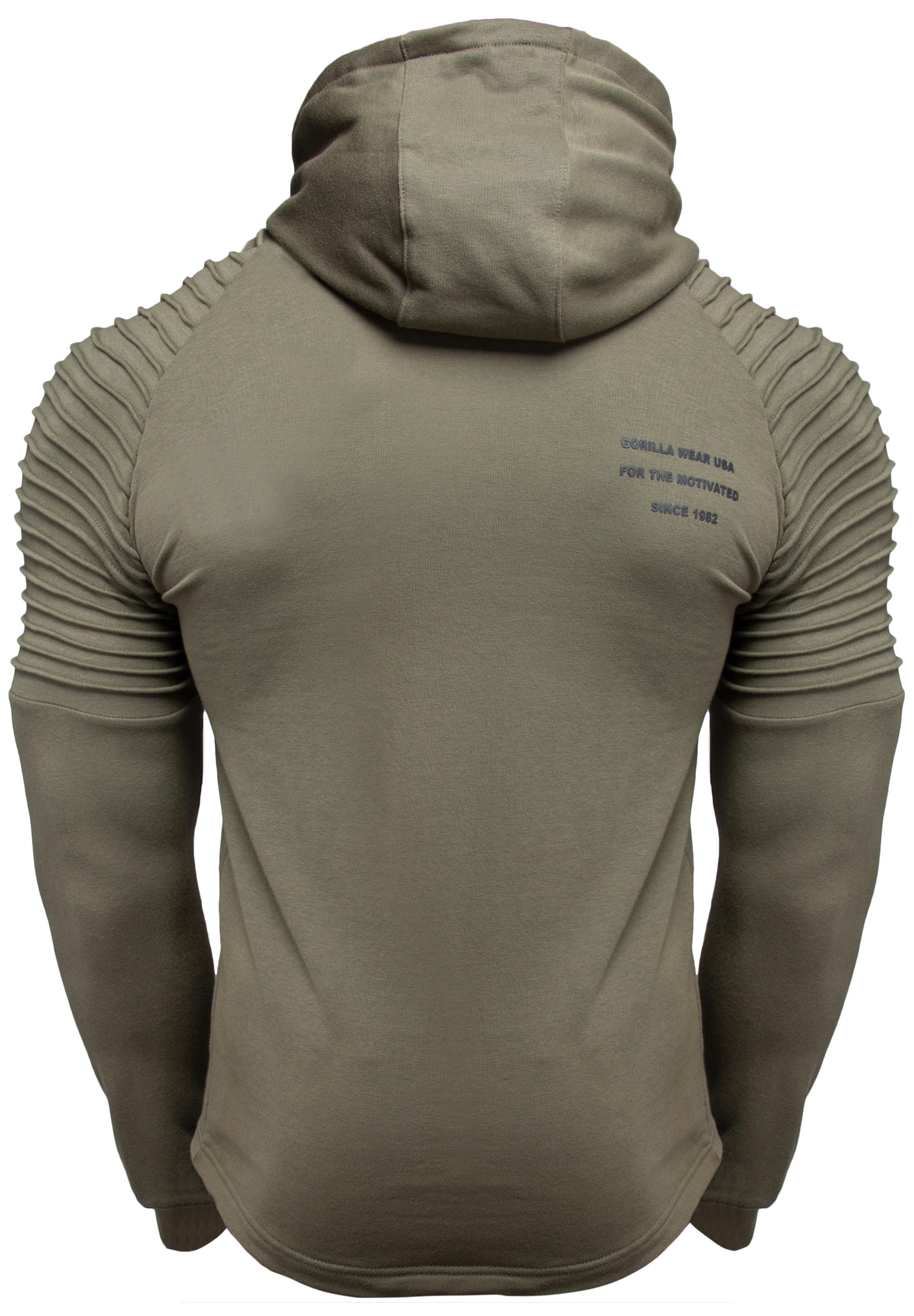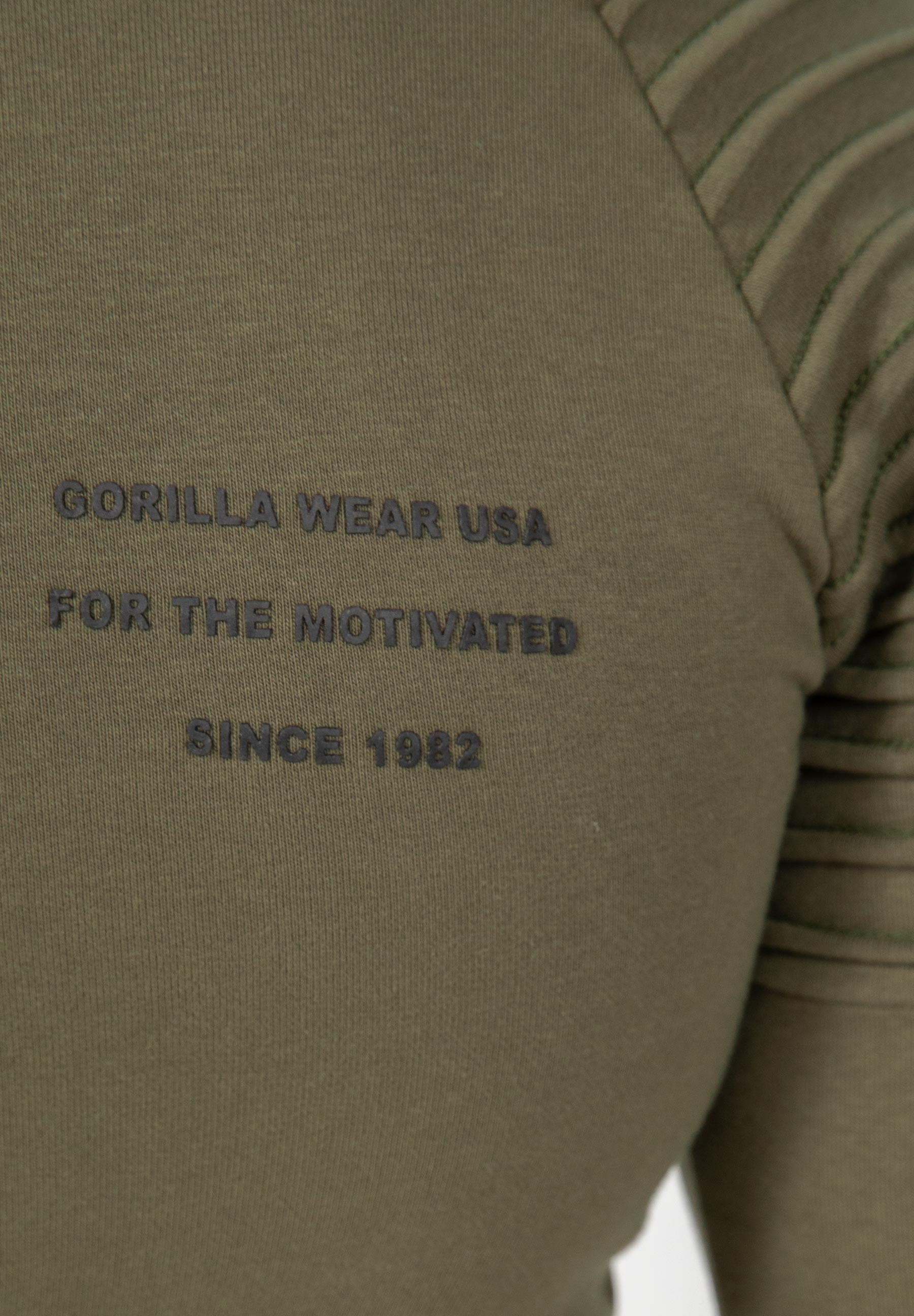 This Gorilla Wear Delta hoodie features a pleated shoulder design and raglan sleeves. The Gorilla Wear hoodie is designed to enable the user with comfort and movement during any type of workout. Lastly, the hoodie features soft fleece fabric to help provide warm and comfortably covered. It's time to show the people that you are a member of the GORILLA WEAR Family where you can choose between the colors Army Green and Gray.