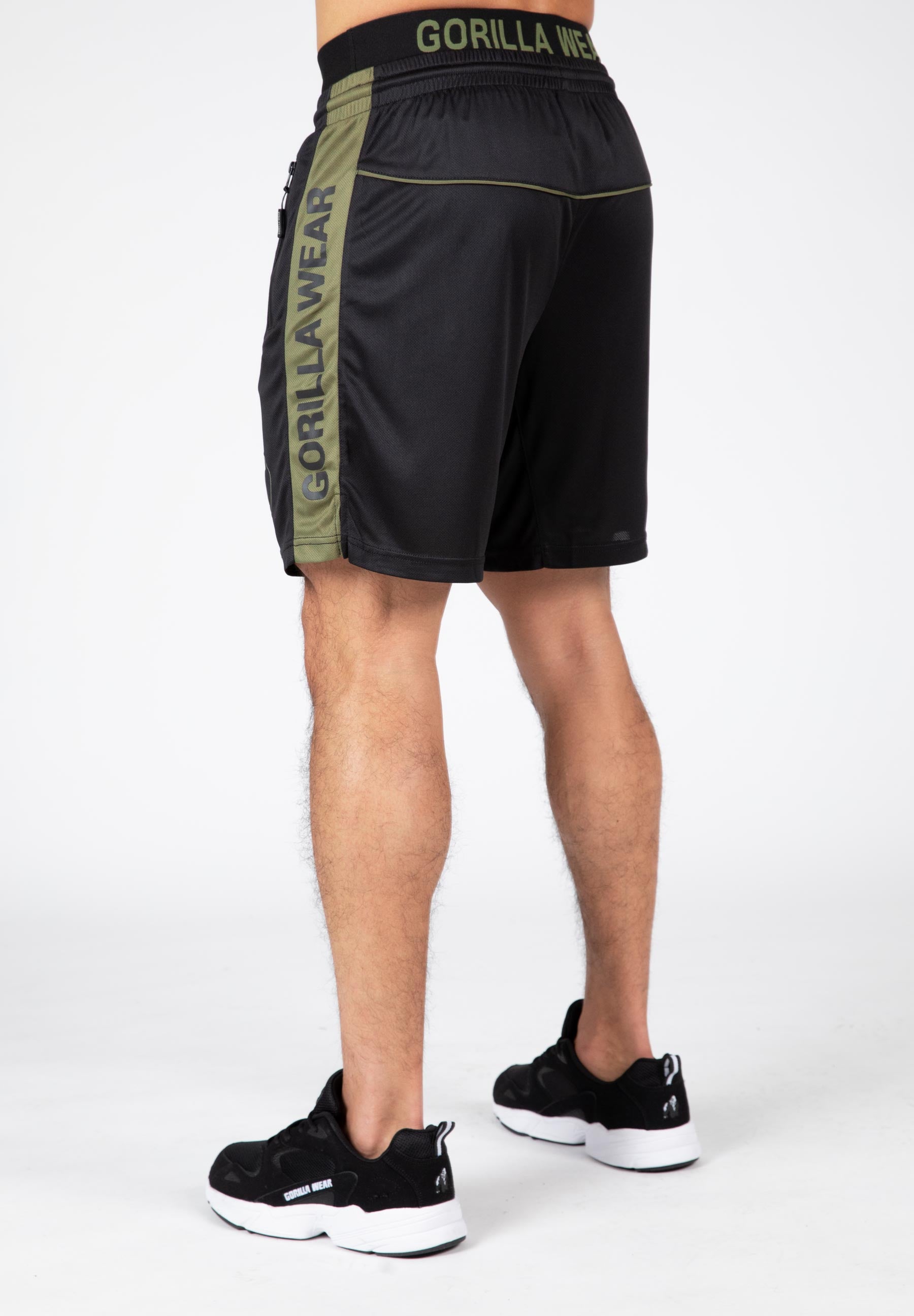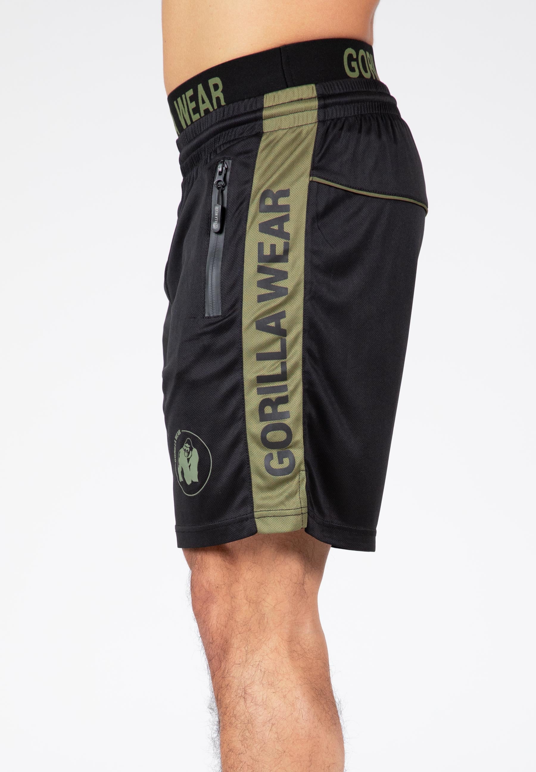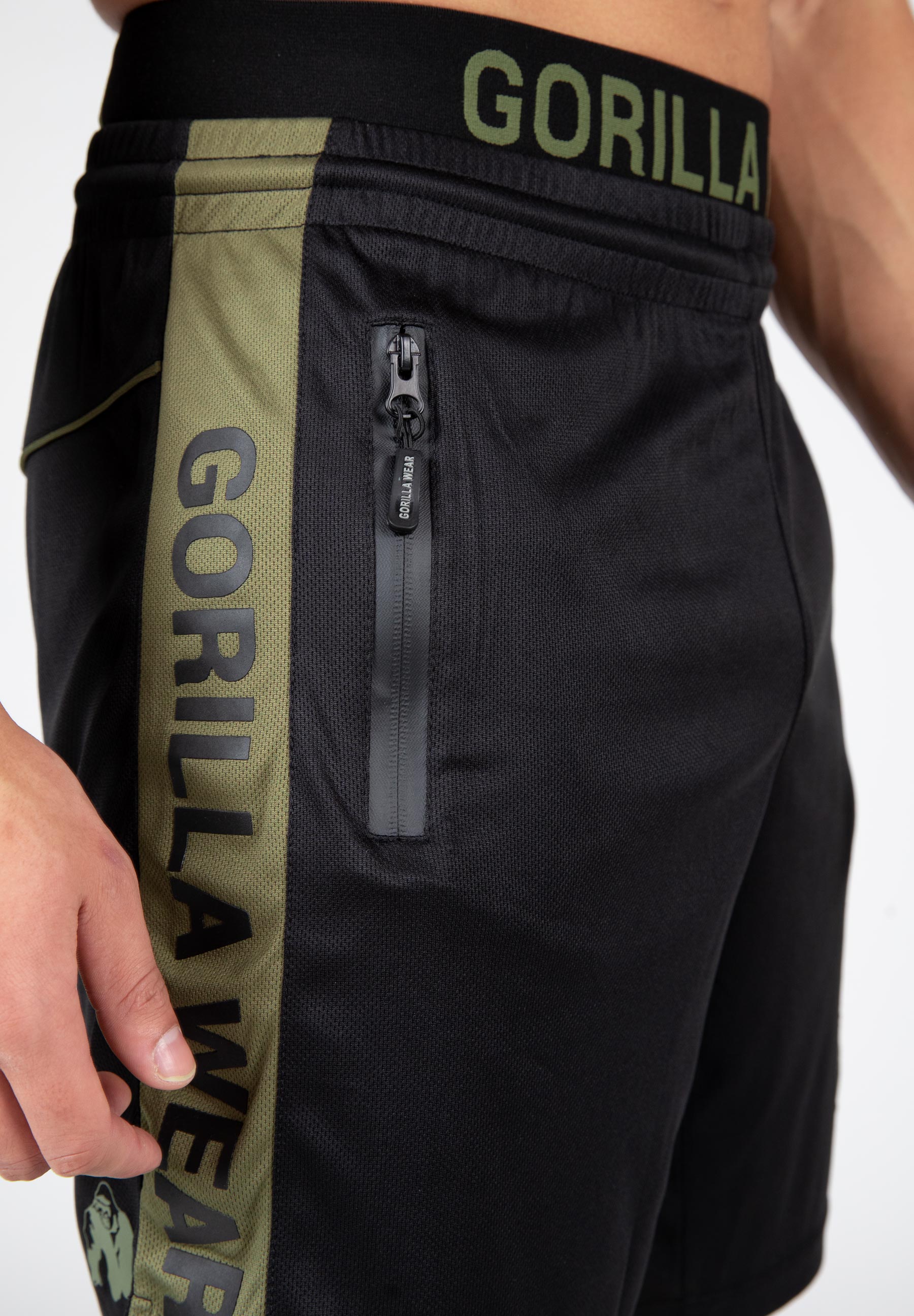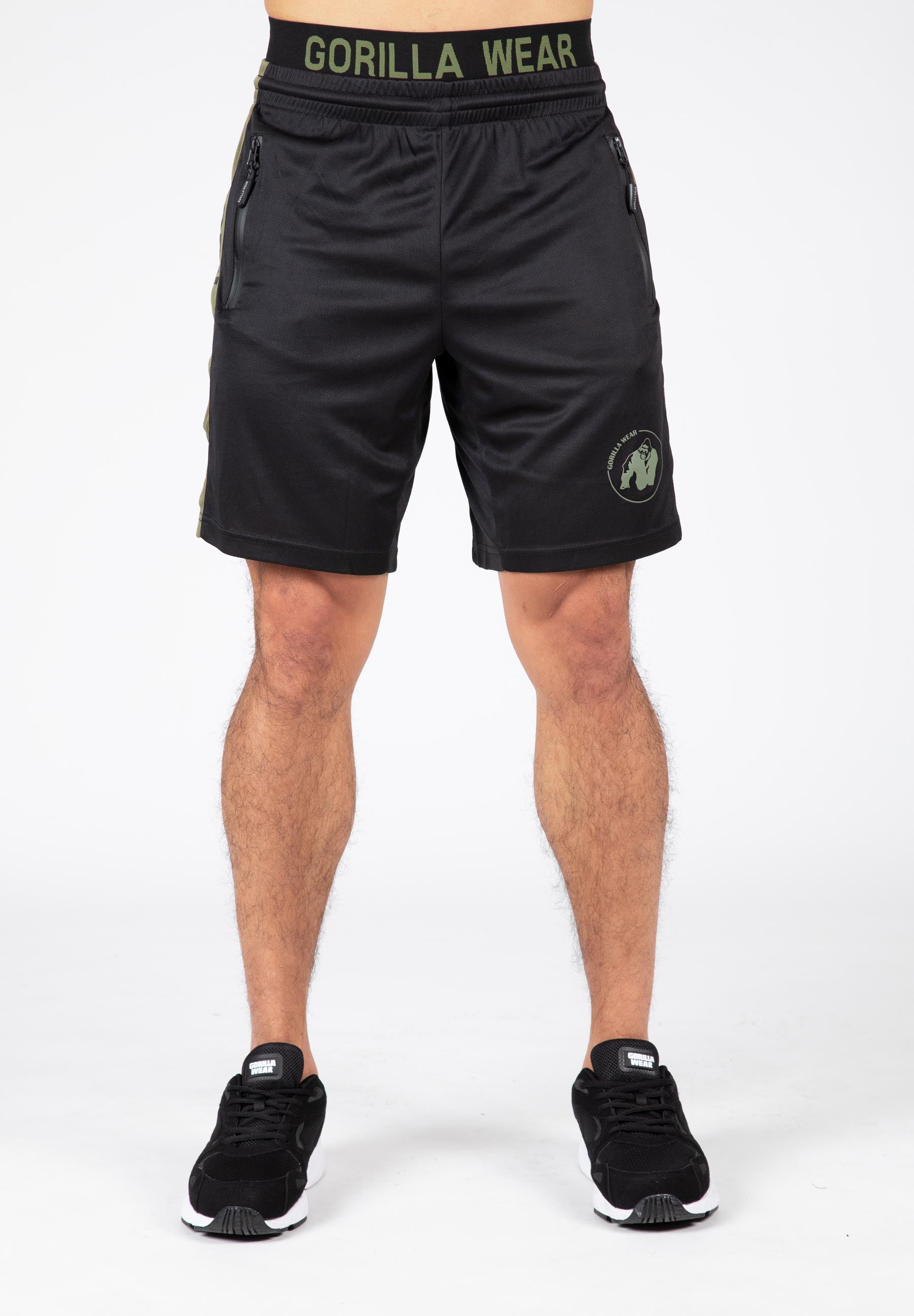 The Atlanta Shorts will keep you cool during intense workouts. They have a regular fit and are made of breathable polyester. These Shorts look cool thanks to the many Gorilla Wear logos and stripes on the sides. The elastic waistband adds to the eye-catching look. The drawstring on the inside lets you tighten or loosen the waistband. You can safely store your belongings in the zippered side pockets. Order yours today and hit the gym!