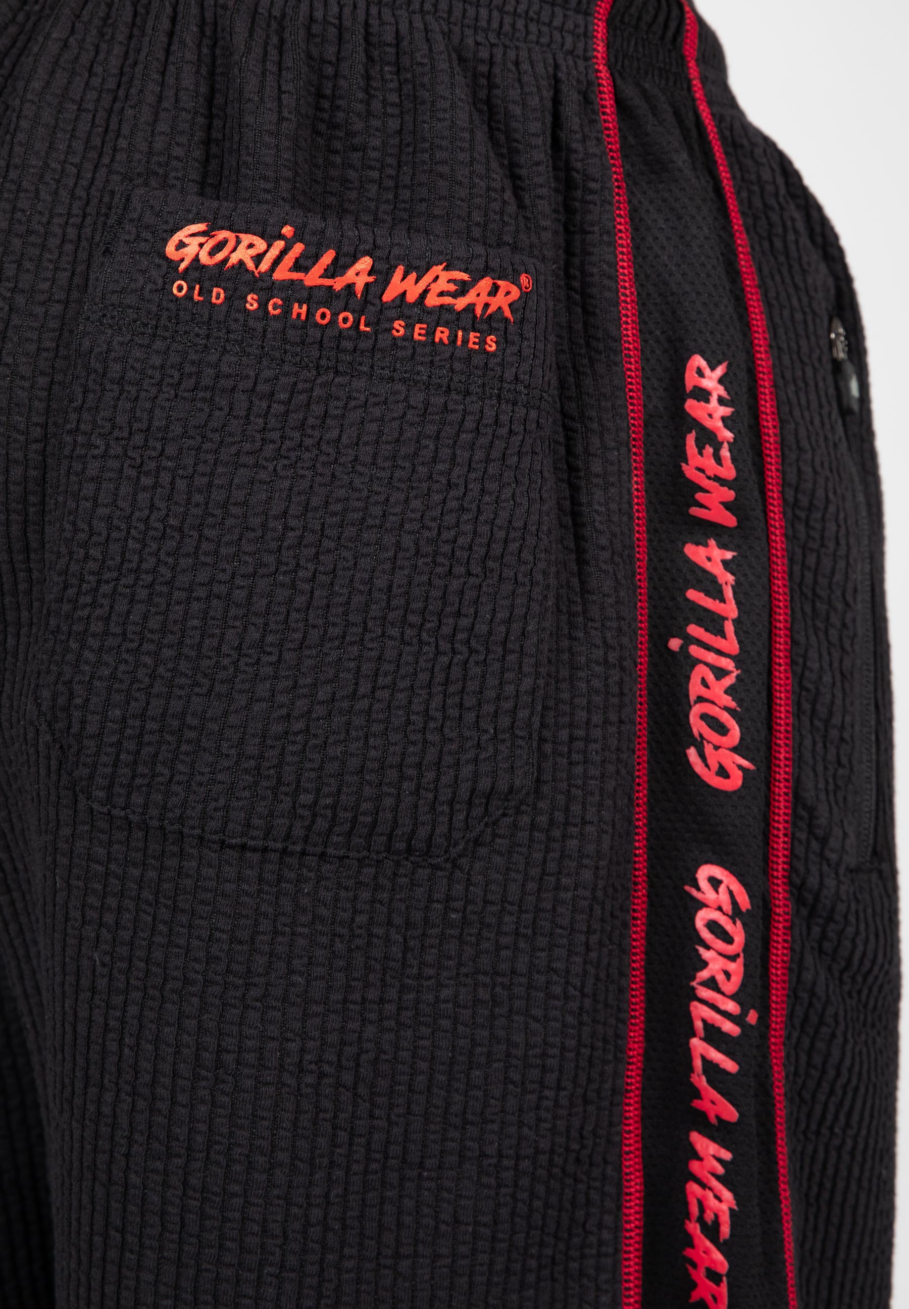 The Buffalo Old School Workout Shorts are one of the unique products you'll only find at Gorilla Wear. It is part of a three-piece set, with a matching workout top and workout pants. The ribbed fabric and striking logos provide a classic and tough look. Each piece of the set features a huge Gorilla Wear logo and old-school taping. It has zippered pockets so you can keep small belongings with you. The loose fit feels comfortable during exercise. This one is for the true Gorilla Wear lovers!