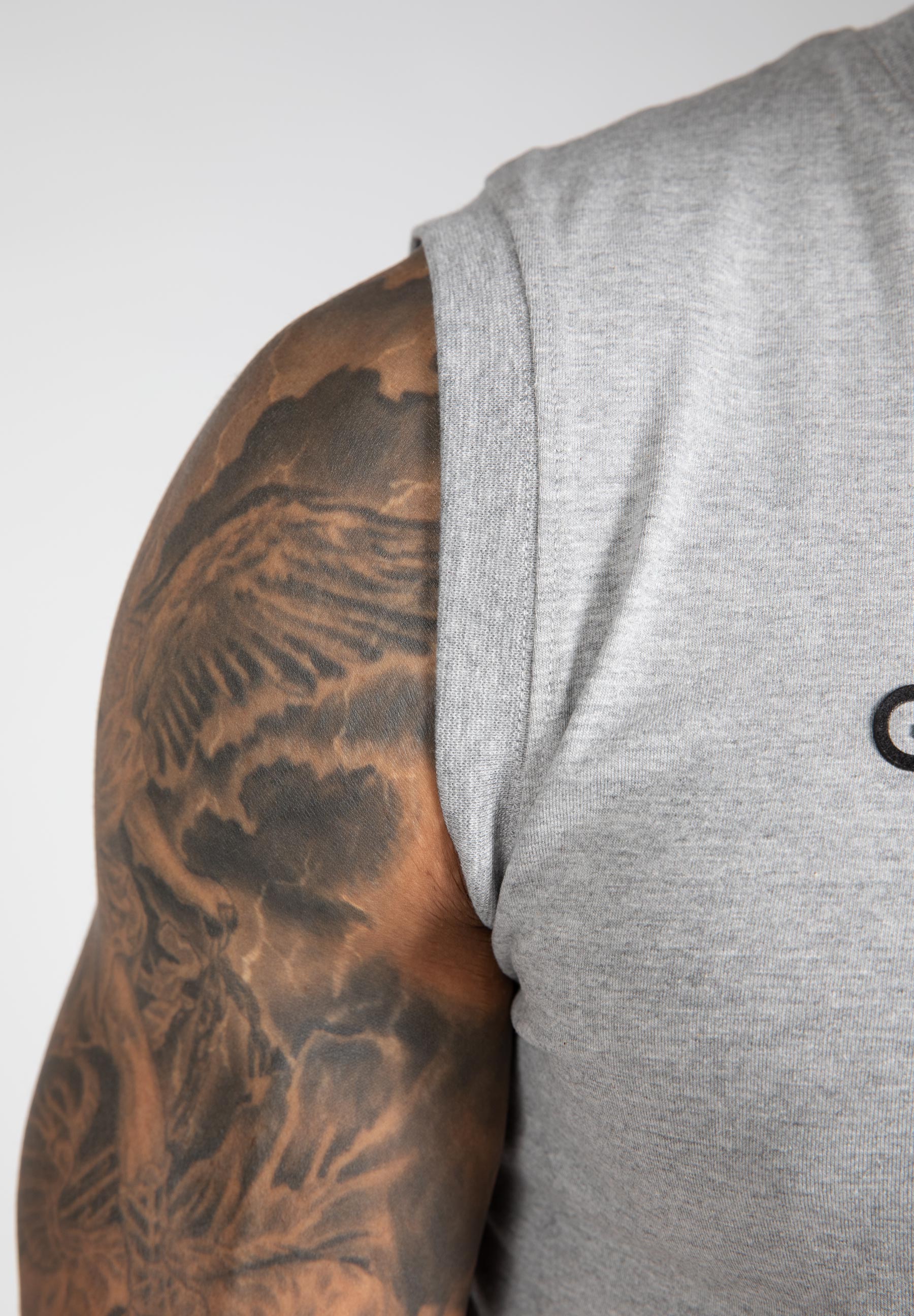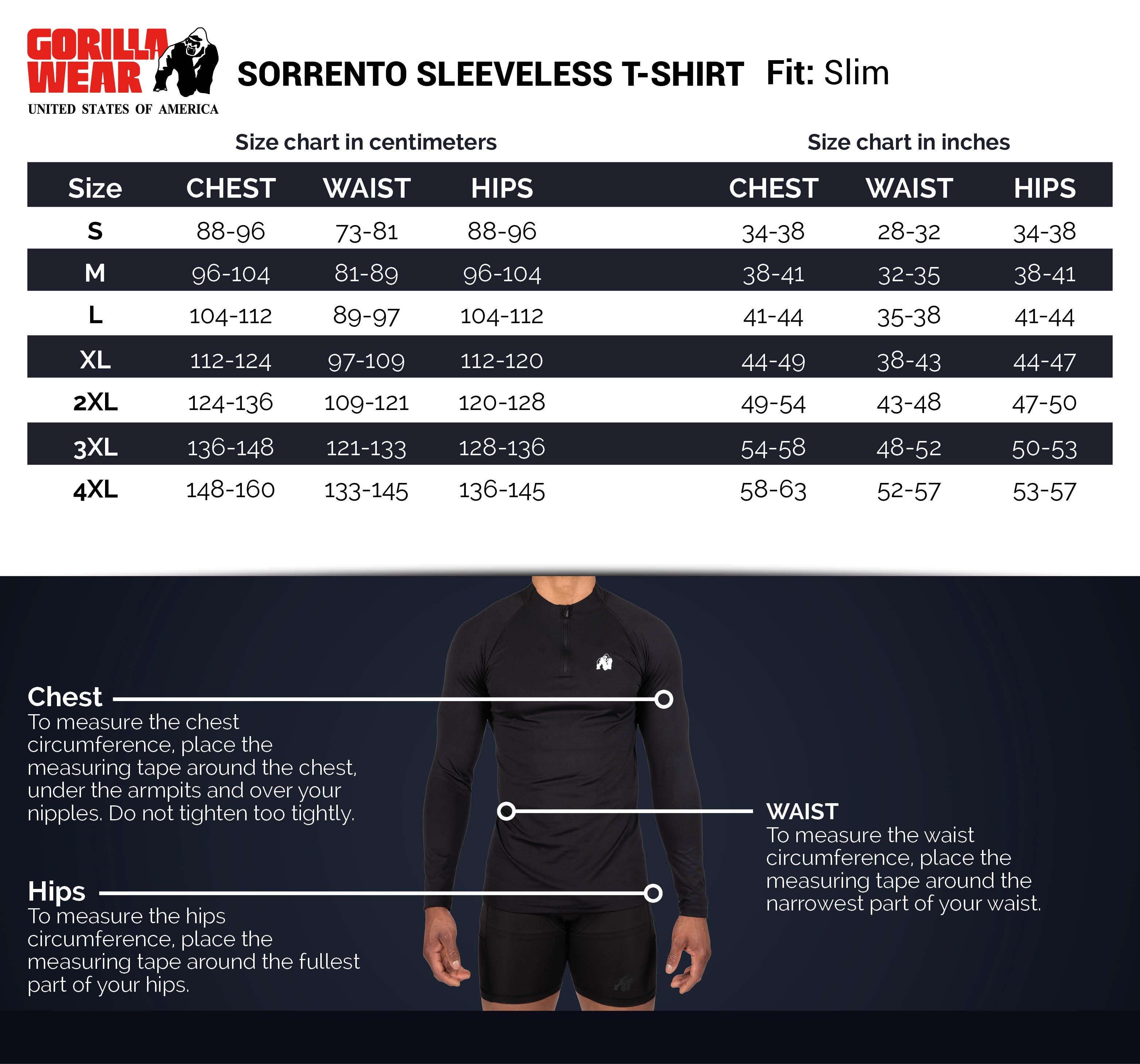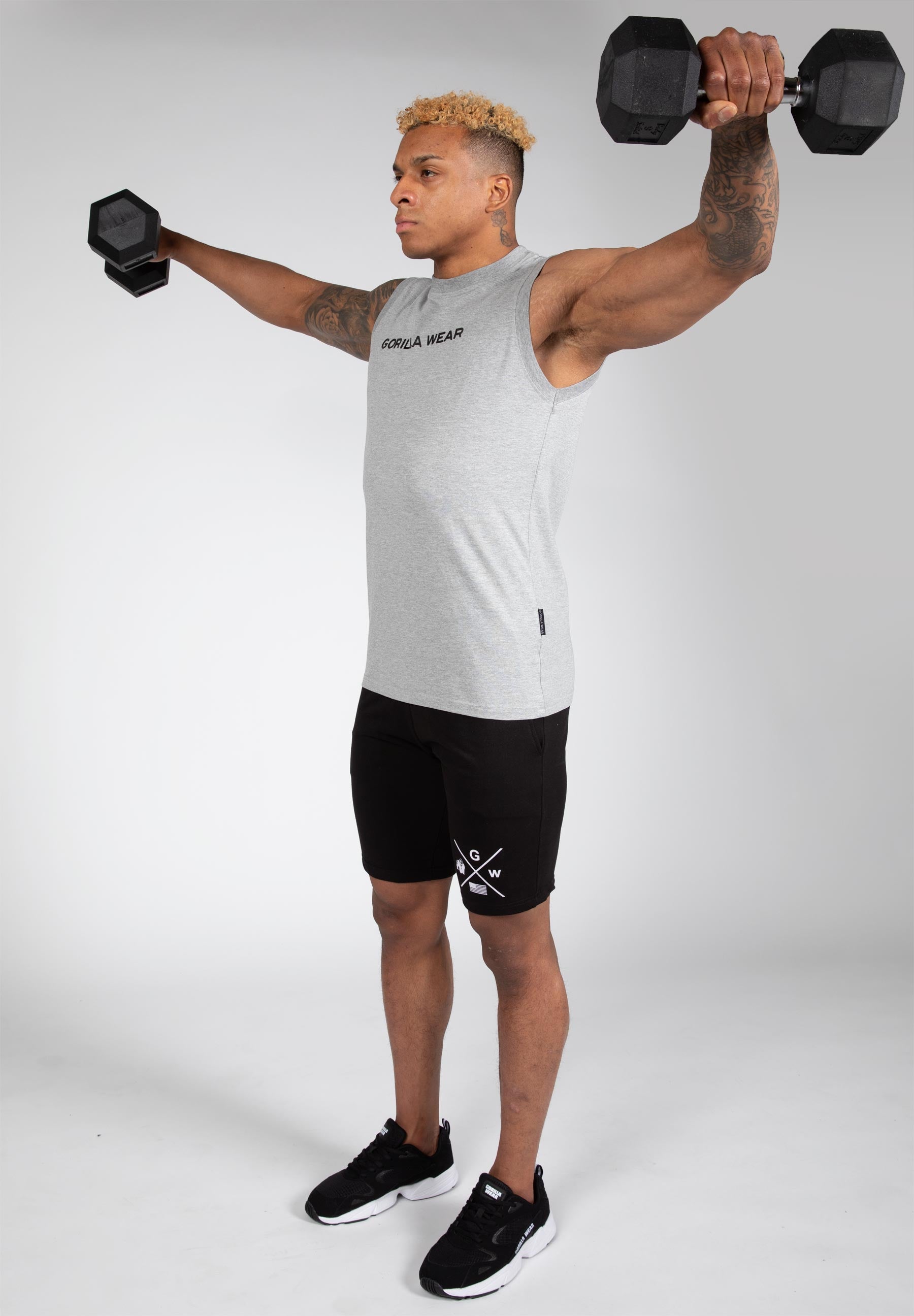 Make a statement in the gym and show off your hard-earned gains with the Sorrento Sleeveless T-Shirt. The sleeveless design allows for optimal freedom of movement and just the right amount of coverage. This slim-fit top is made from a blend of high-quality cotton and elastane making it stretchy and lightweight. The screen-printed Gorilla Wear logo on the chest looks sleek. Perfect to wear while exercising or on summer days. Available in Black and Gray.