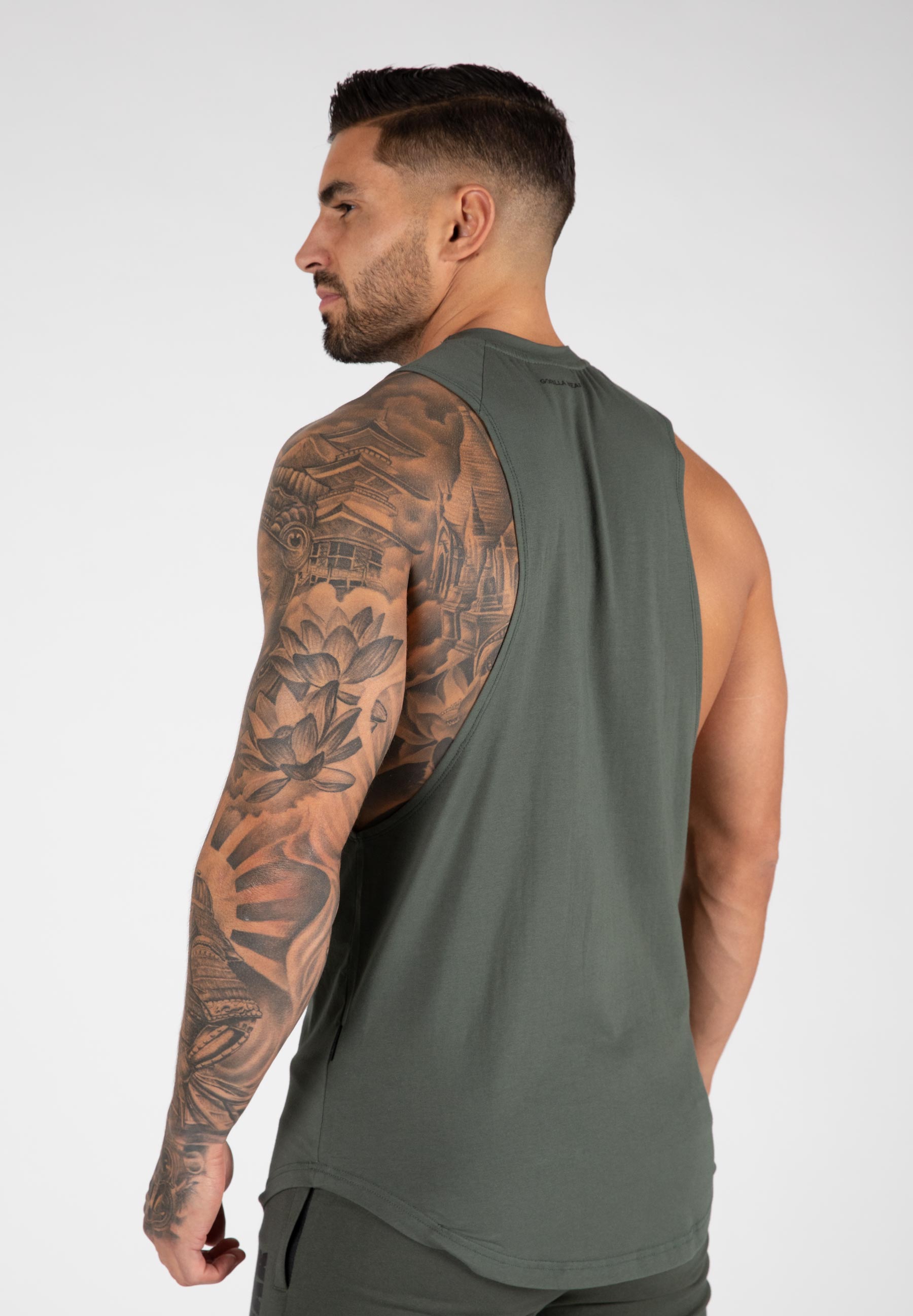 Show off the muscles you've worked so hard for with the Milo Drop Armhole Tank Top. This regular fit tank top is made from a blend of high-quality cotton and elastane. This blend of fabrics ensures that the tank top is stretchy, lightweight, and great to wear. The low-cut armholes allow for maximum freedom of movement. The top flaunts the Gorilla Wear logo on the chest. Complete your outfit with the matching Milo Shorts and let nothing get in the way of your workout!