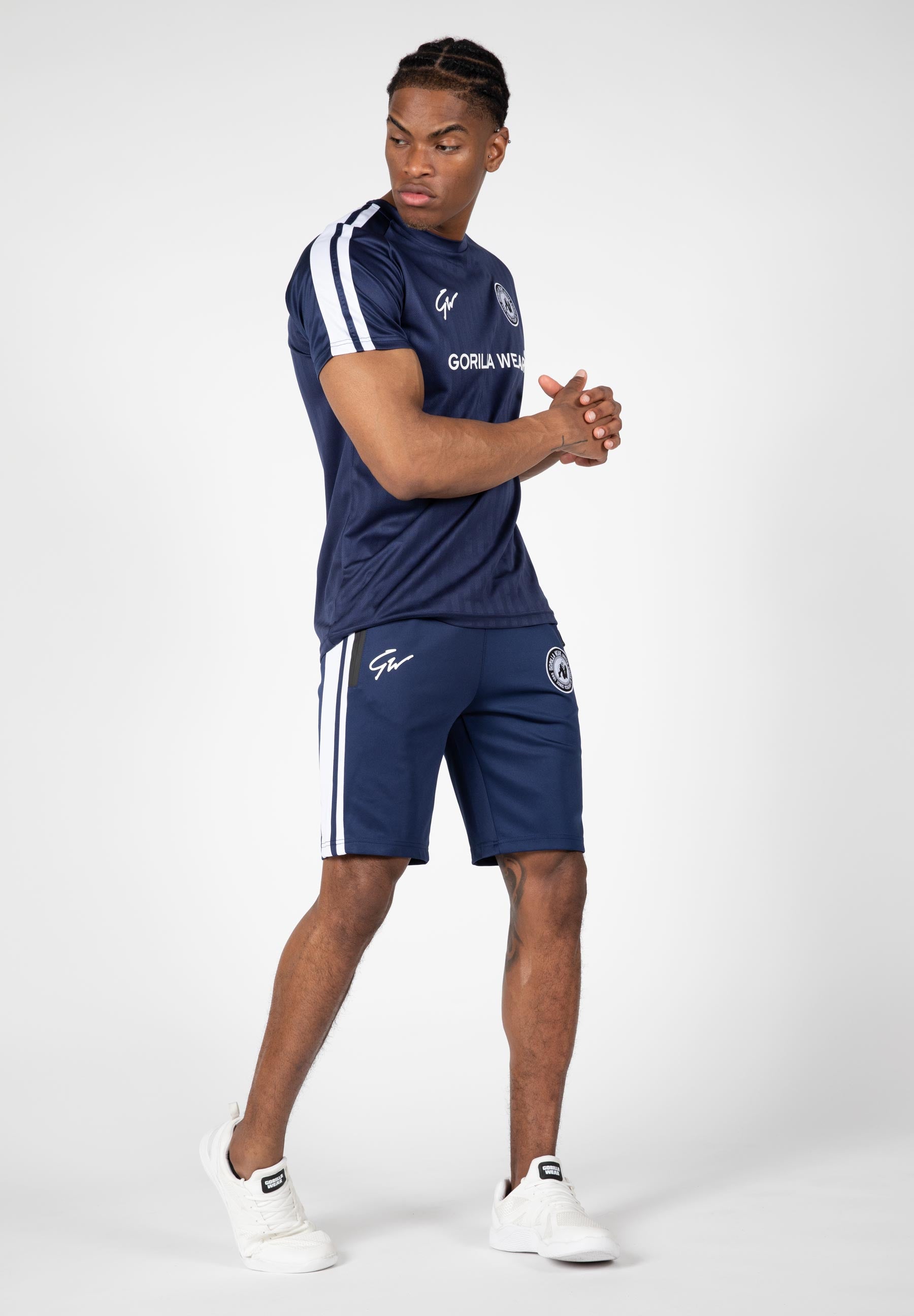 With the Stratford T-Shirt, all eyes are on you. Perfect to wear during workouts thanks to the breathable polyester that keeps you cool and focused. But definitely suitable to wear outside the gym as well, because it looks cool and feels great. It has a regular fit and is made of sweat-wicking material. This top has an embroidered emblem on the chest, complemented by screen-printed lettering. And what's even better is that this T-shirt is available in two different colors and is part of the Stratford set. This set includes matching pants and shorts. Complete the entire set and steal the show!