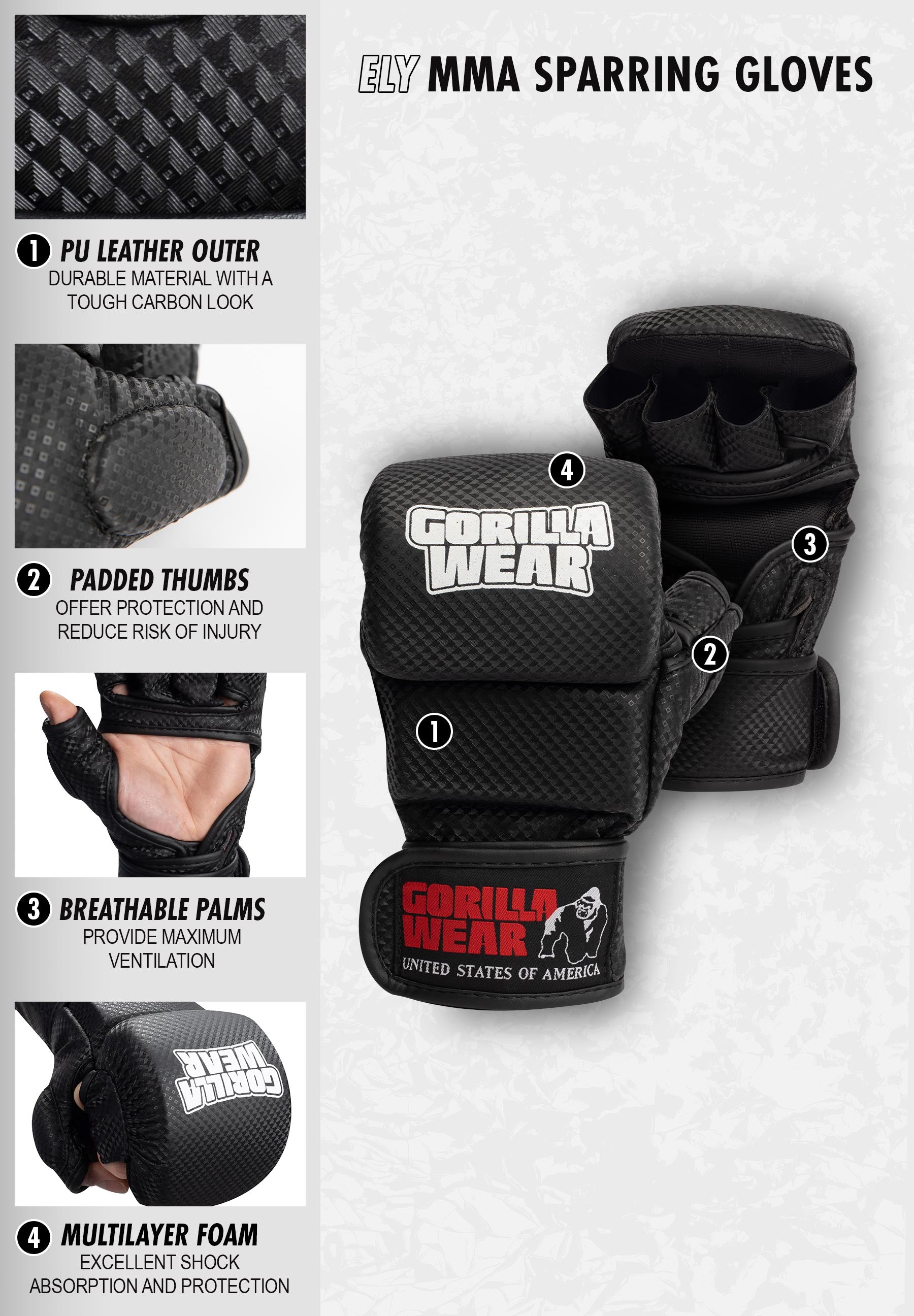 Premium carbon design together with superior glove construction to increase your MMA Skills. Durable quality, training after training. Due to the reinforced top padding made out of high-density foam, you will be ensured with excellent shock absorption. Along with increased finger flexibility and increased thumb protection, the Ely MMA Sparring Gloves are your new partner in crime to complete pad and heavy bag workouts. The durable velcro strip which locks your wrist due to the full wrist wrap design increases your power and avoids the risk of injury. Our Fighting Equipment is the result of a strong collaboration with professional MMA fighters: Cody Garbrandt, Erko Jun, and Alexander Gustafsson. Getting yourself a pair of Ely MMA Gloves means you are choosing to fight with control, power, and superior protection.