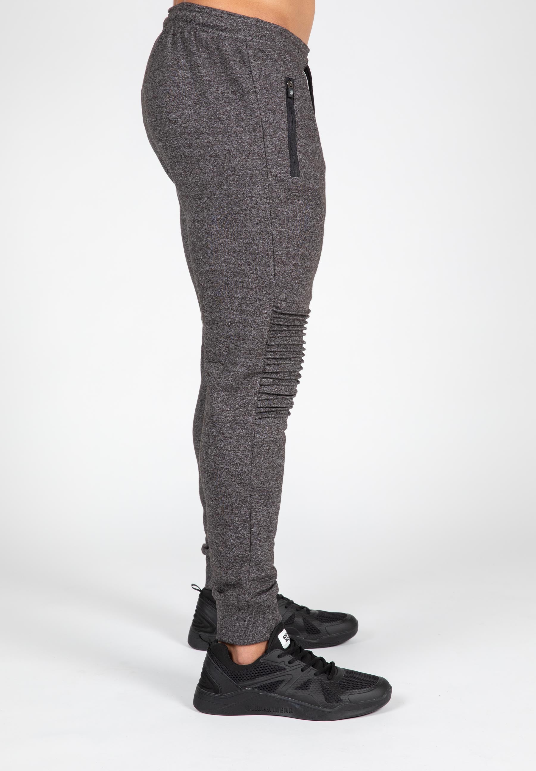 You can wear the Delta Pants both in the gym and while relaxing. The pants have ribbed knees that provide a cool look and allow for extra freedom of movement. They have a slim fit and are made of a blend of cotton and polyester, making them super comfortable to wear. They feature a drawstring waistband, zippered pockets, and of course the recognizable Gorilla Wear logo. Available in Army Green, Black, and Gray. Complete your outfit with the matching Delta Hoodie!