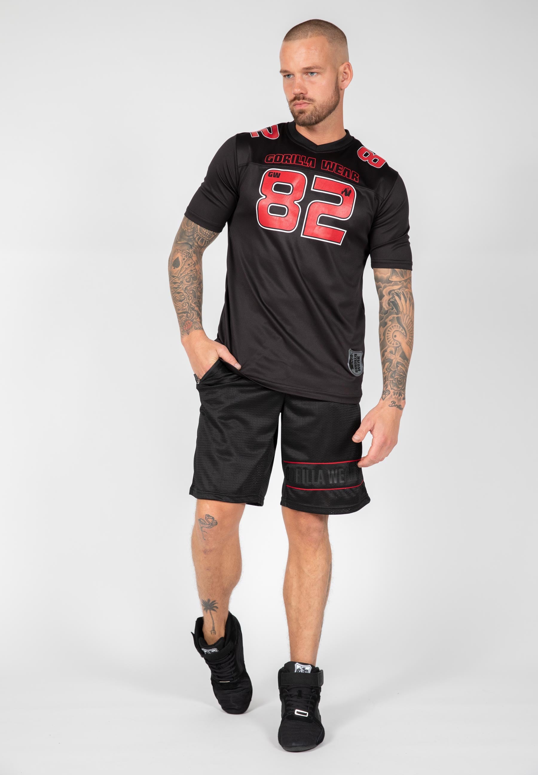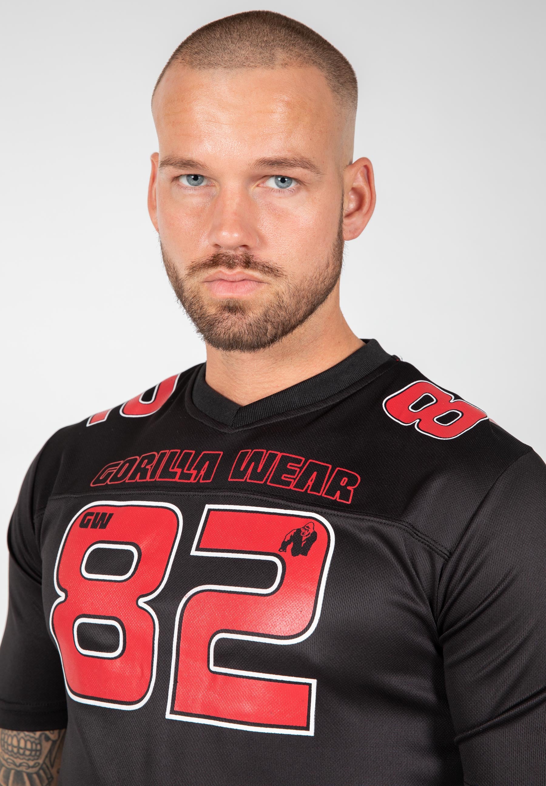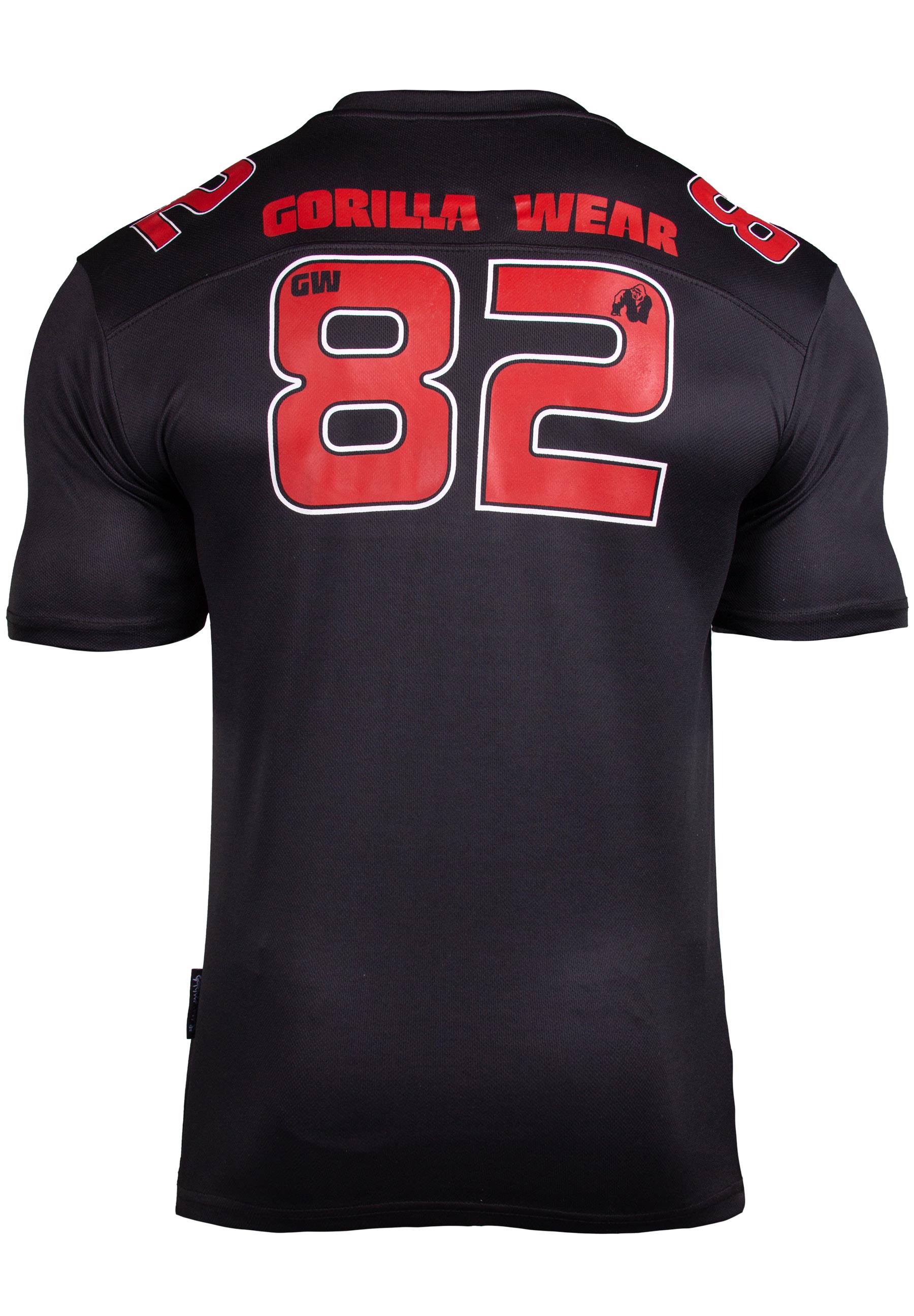Are you ready to rep your favorite workout brand? Then this athletic-cut Gorilla Wear USA shirt is the perfect choice for you. This athletic-cut shirt fits closer to the body, you'll love flaunting your style when you sport this trendy Gorilla Wear USA shirt. The number 82 is printed on the front and back of the shirt. We have been providing the motivated with high-quality sports apparel since 1982 and we are proud to show it. It's time to show the people that you are a member of the GORILLA WEAR Family where you can choose between the colors Black/Red and Black/Gray.