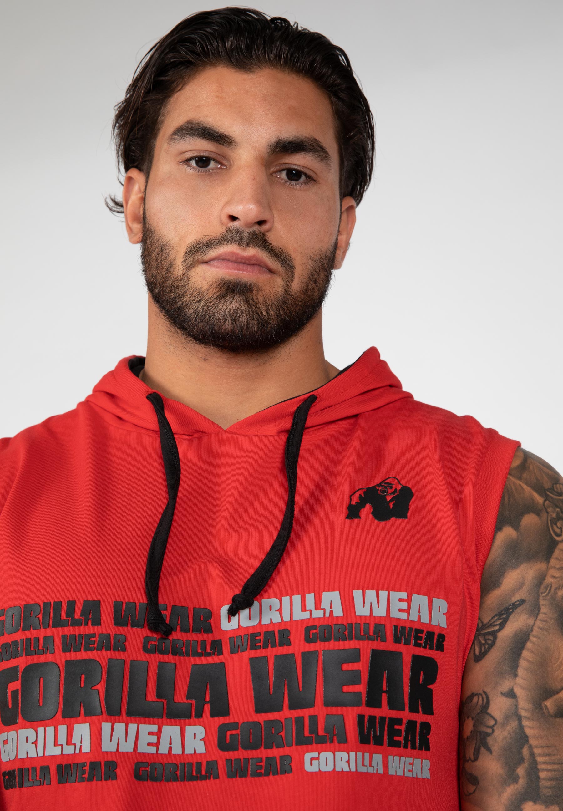 This Gorilla Wear sleeveless hoodie is super light and perfect for any kind of training. Its sleeveless streamlined design allows for optimal mobility and gives the user the right amount of coverage. This sleeveless hoodie is made out of high-quality fabric and designed for comfort and durability. It`s time to show the people that you are a member of the GORILLA WEAR Family where you can choose between the colors Red and Black.