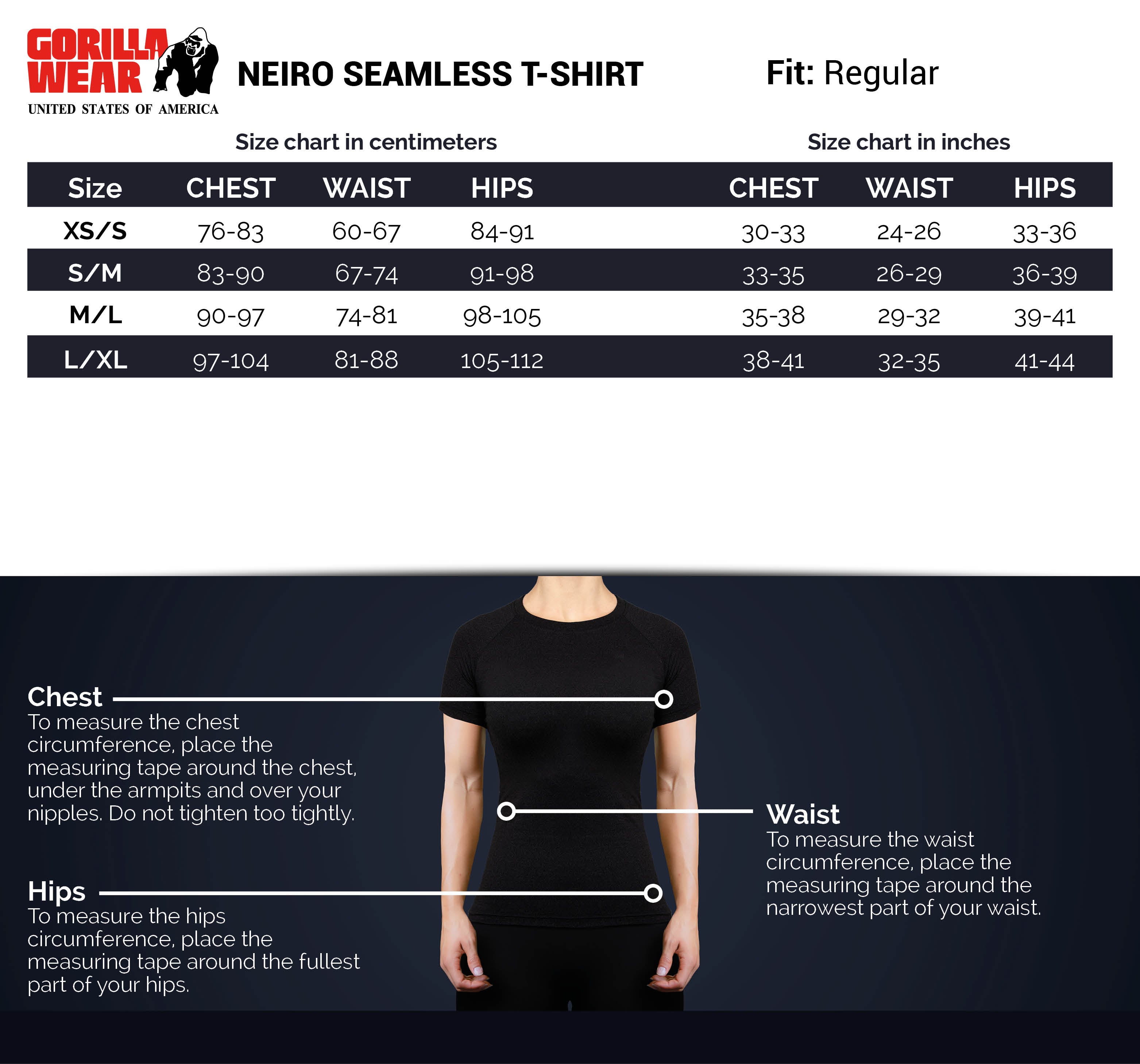 The Neiro Seamless T-Shirt offers you everything you desire from a workout T-shirt. The T-shirt is loose fit and seamless so that you won't experience any friction or irritation during your workouts. This also means full freedom of movement and staying cool when exercising. The top is finished with eyelet details and a white Gorilla Wear logo. The Neiro is made of quick-dry fabrics and feels great to wear. This Seamless T-Shirt is available in 3 different colors and comes with matching Leggings and Sports Bras. It's time to go all in!