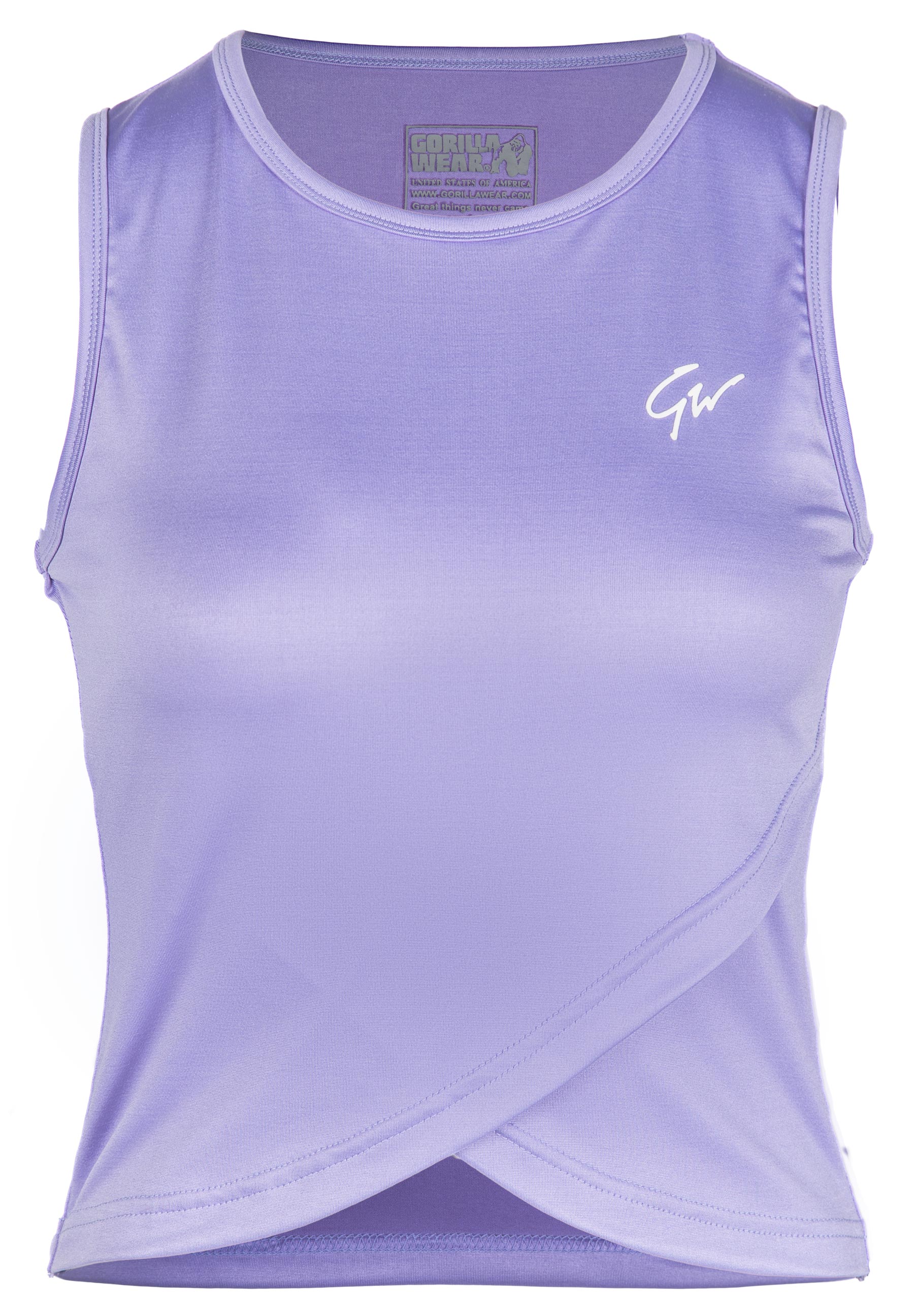 Wearing the Estelle Twisted Crop Top is a great way to work out. It has a cropped length, is silky soft to the touch, and is made of stretch fabrics. This charming top gives you the ability to move without any restrictions. Thanks to the twisted front and the GW Signature logo, it looks super cute too. The Estelle Twisted Crop Top pairs well with shorts, leggings, and pants. Available in Black and Lilac, so you can alternate your gym outfits.