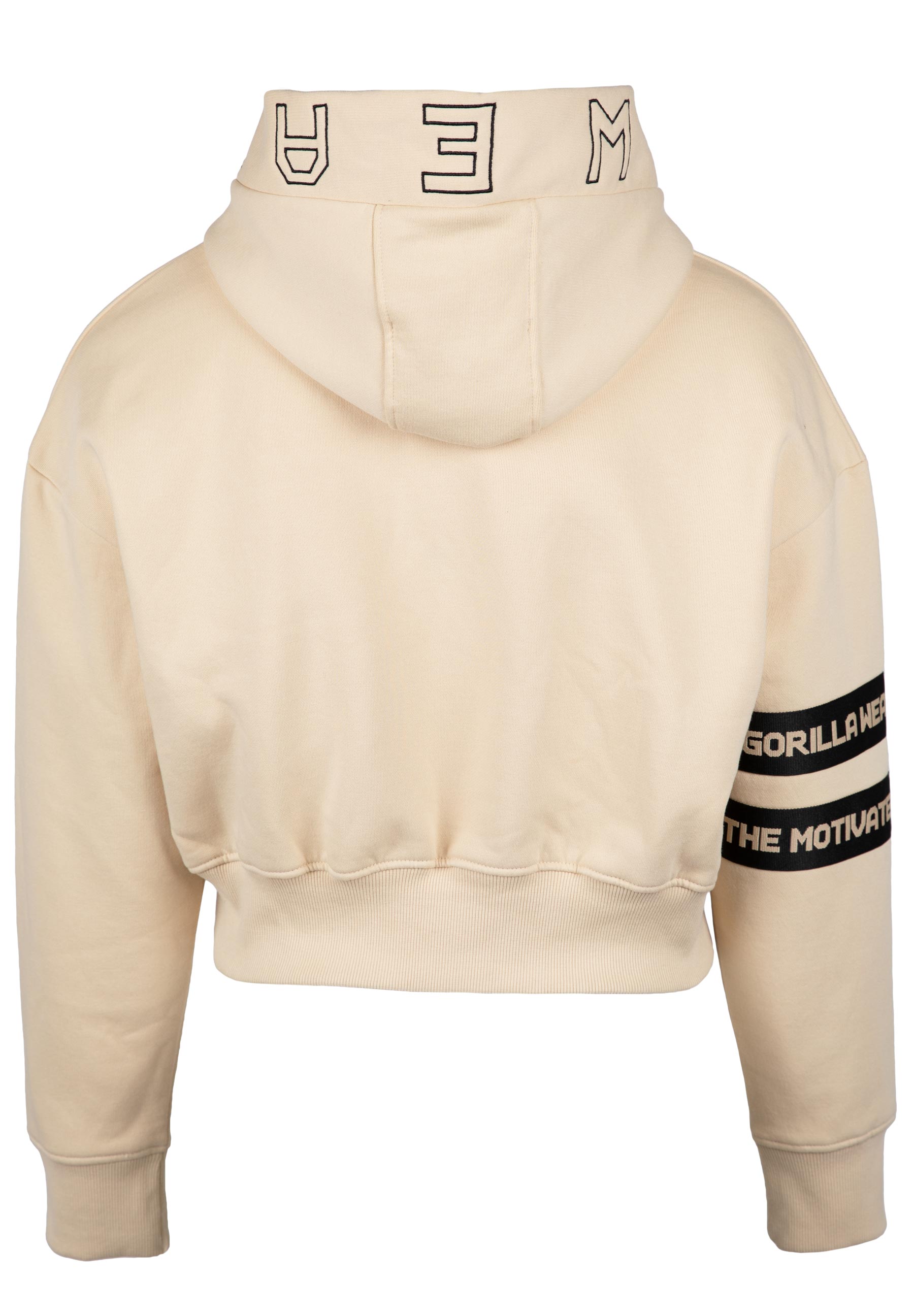 The Tracey Cropped Hoodie is the epitome of casual elegance thanks to its loose cut and shorter length. Wearing this hoodie will give your busy lifestyle a stylish twist. The front and hood are adorned with embroidered logos, while the right arm showcases a distinguishing band including text logos. Indulge in unparalleled coziness and warmth thanks to the brushed interior of this sweatshirt. When you're at the gym or just hanging out, comfort is key.