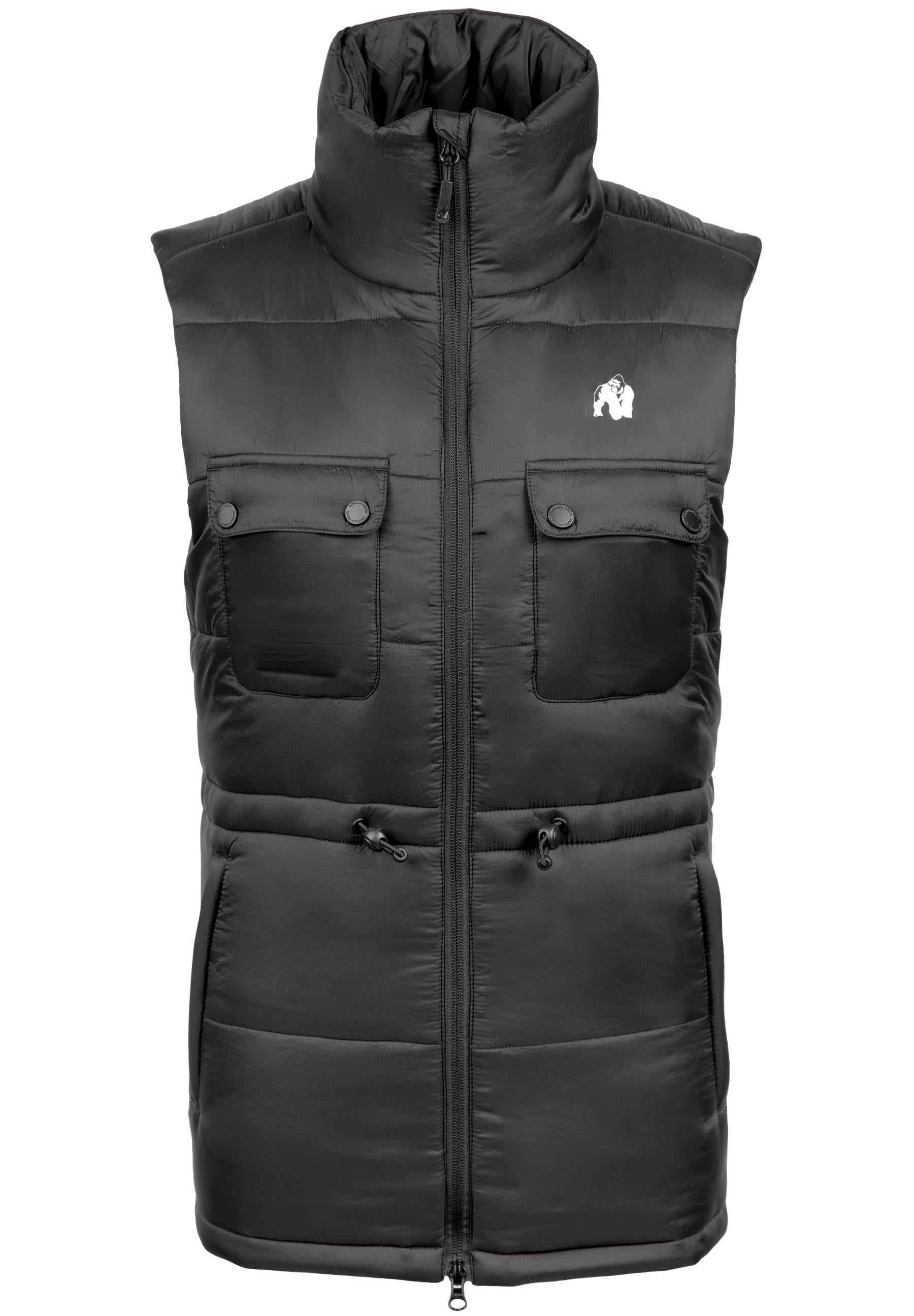 Expand your wardrobe with the Lucia Puffer Vest, a seamless blend of fashion and utility designed for the modern woman on the go. The regular fit provides a flattering silhouette and allows for layering when the weather calls for it. Crafted with attention to detail, this vest features a drawstring waist so you can adjust the fit to your liking and accentuate your figure. The chest pockets and side pockets offer both style and convenience, providing ample storage for all your essentials. The recognizable chest logo and rubber patch on the back embody the Gorilla Wear spirit and make a bold statement wherever you go.