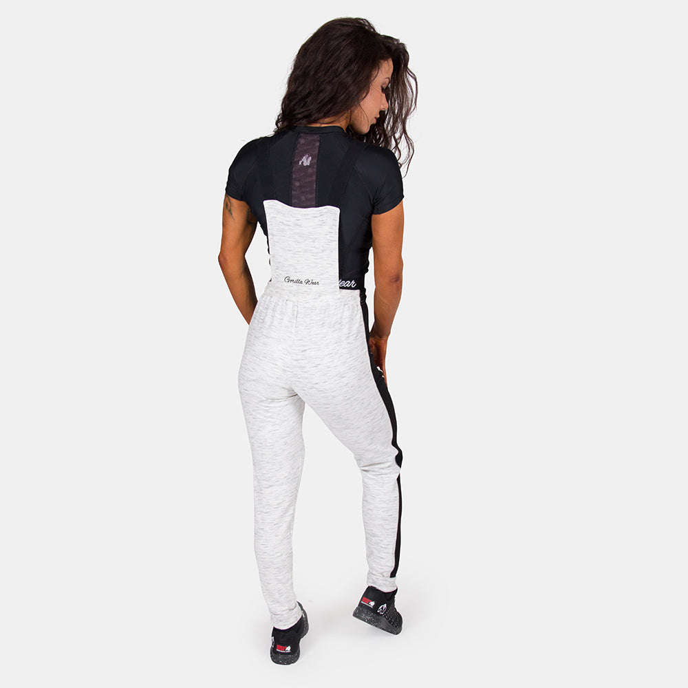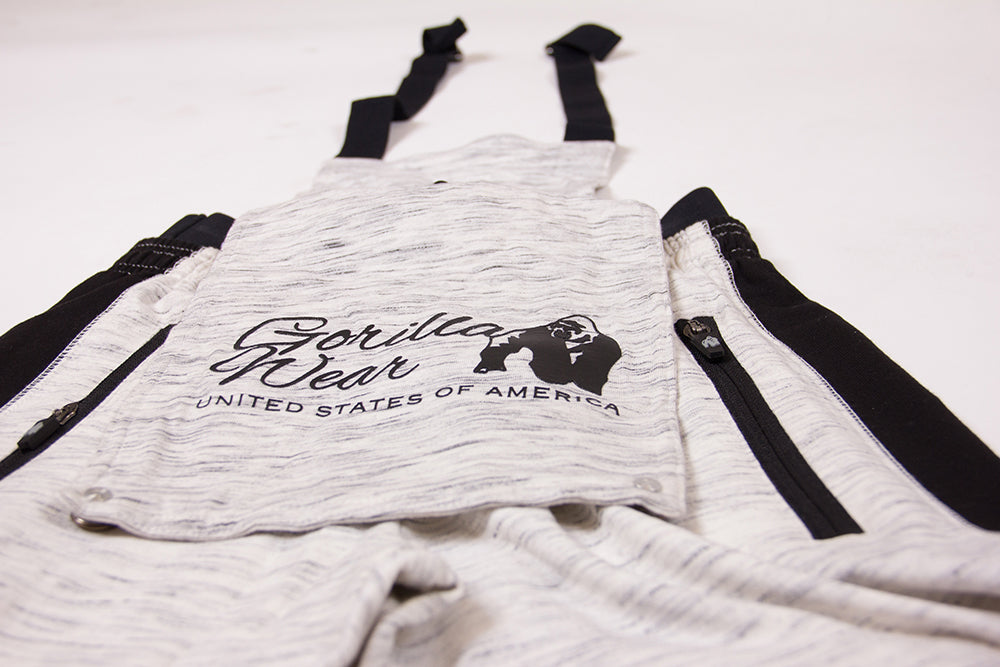 This Gorilla Wear Dolores Dungarees is made of cotton and spandex for a fresh look and lightweight feel. In a relaxed straight-leg silhouette with an apron chest and adjustable racerback straps and two buckles at the front. Equipped with Gorilla Wear waistband inside, a bib patch pocket, buttons on each side, and self-tie adjustable straps. This item has a casual style for a sporty look inside and outside the gym. It's time to show the people that you are a member of the GORILLA WEAR Family where you can choose between the colors Gray/Black and Black/Gray.