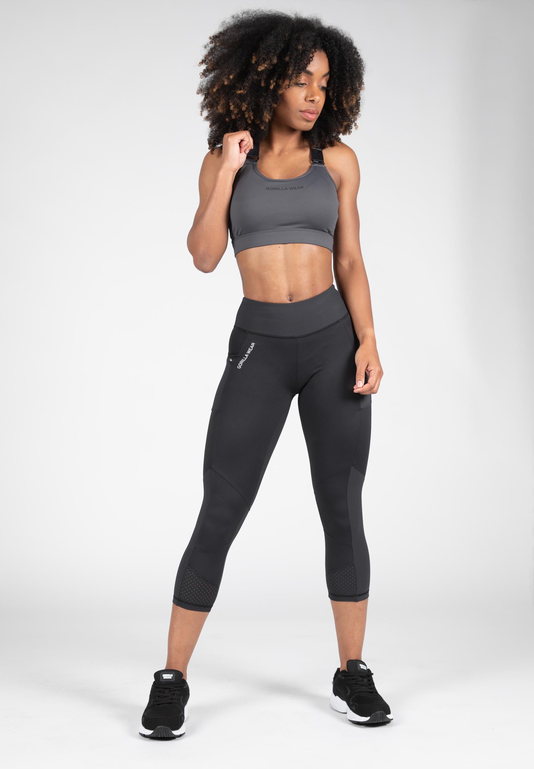 The Monroe 7/8 Leggings are here to keep you cool and focused during workouts. These leggings have a cropped length and mesh parts at the bottom for maximum ventilation. The fabrics are nice and stretchy, allowing you to enjoy the freedom of movement. The ribbed waistband fits perfectly around the waist. Thanks to the zippered pocket on the side, you can keep your small belongings safe with you. The leggings are finished with several ribbed sections and a small screen printed Gorilla Wear logo on the hip. They have been tested and are 100% squat-proof. The Monroe 7/8 Leggings can withstand any workout!