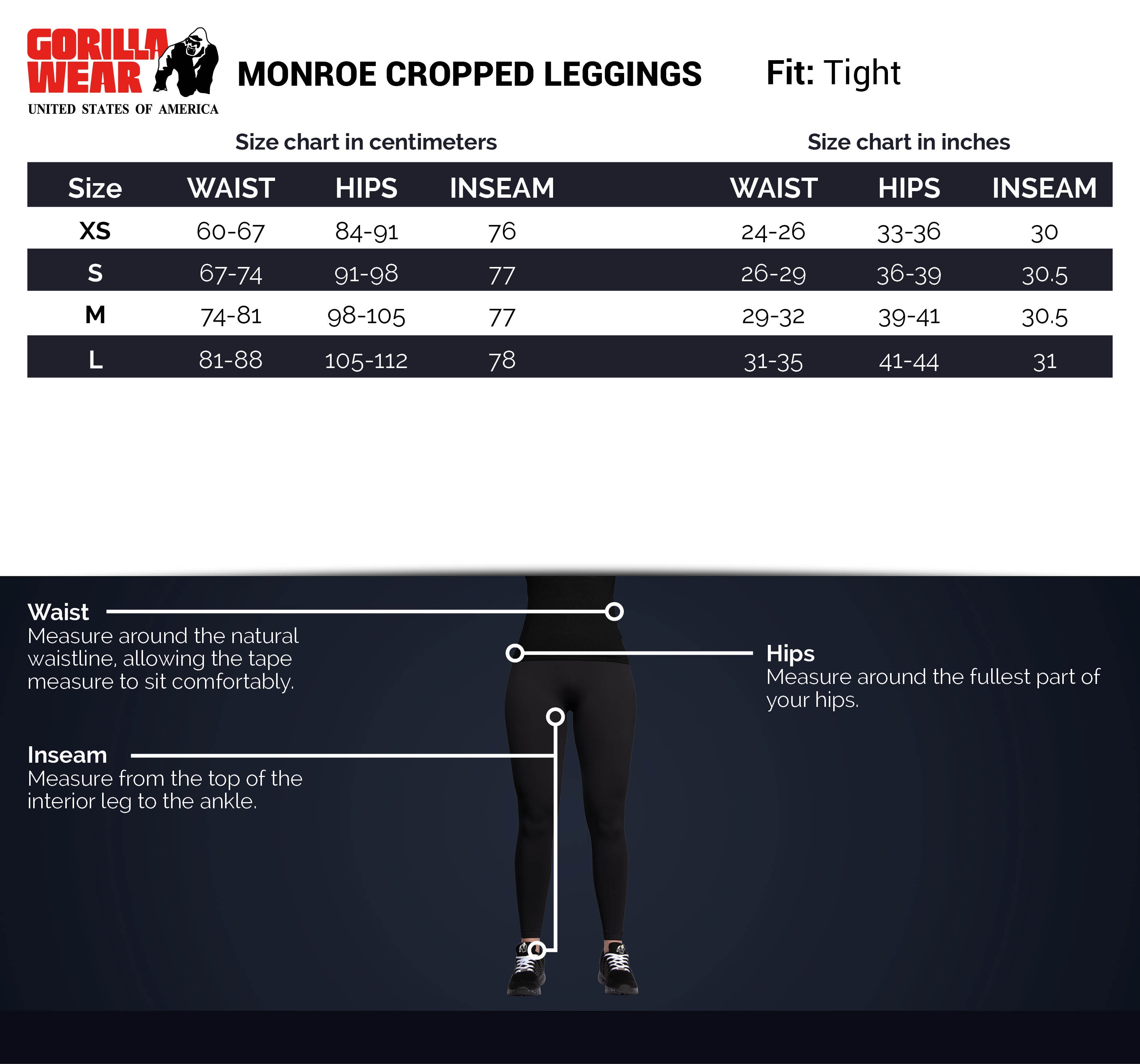 The Monroe Cropped Leggings is here to keep you cool and focused during workouts. These leggings have a cropped length and mesh parts at the bottom for maximum ventilation. The fabrics are nice and stretchy, allowing you to enjoy the freedom of movement. The ribbed waistband fits perfectly around the waist. Thanks to the zippered pocket on the side, you can keep your small belongings safe with you. The leggings are finished with several ribbed sections and a small screen printed Gorilla Wear logo on the hip. They have been tested and are 100% squat-proof. The Monroe Cropped Leggings can withstand any workout!