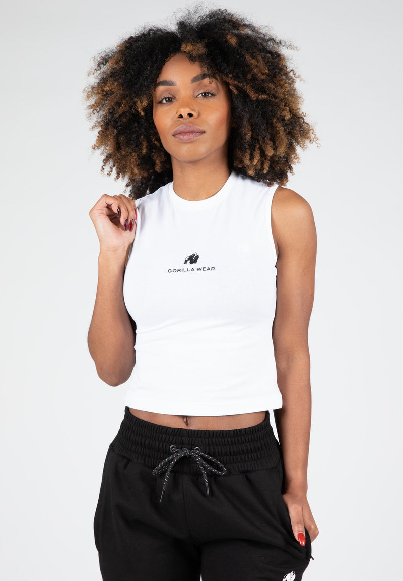 Look great while exercising with the Livonia Crop Top. This cropped tank top has a slim fit and is made of stretchy fabrics which makes it a pleasure to wear. The sleeveless and shortened design gives you the ability to move without any restrictions. Of course, it features screen-printed Gorilla Wear logos. The Livonia Crop Top pairs well with shorts as well as leggings and pants. It’s available in three colors, so you can alternate your gym outfits.