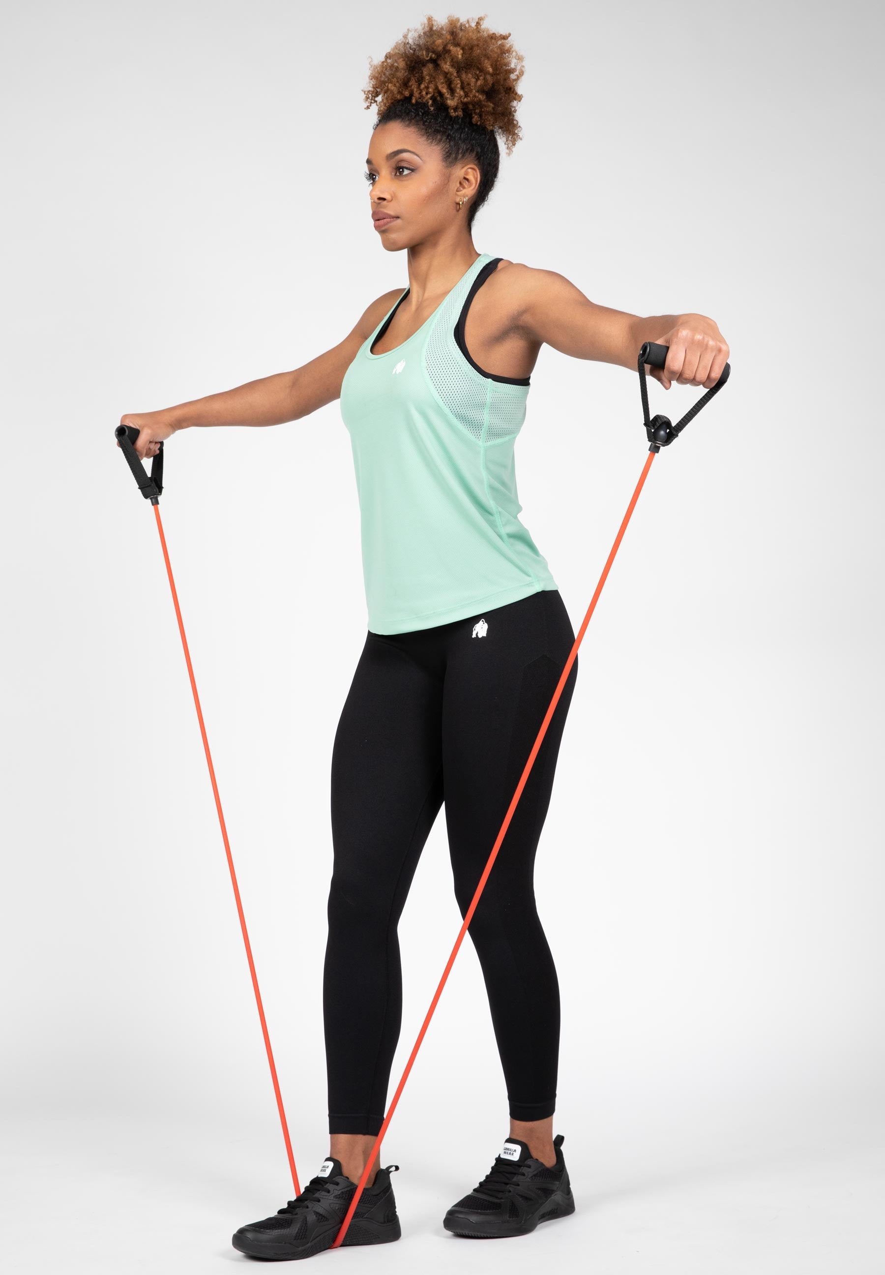 The Seattle Tank Top is everything you need during your workouts. It’s loose, lightweight, and it keeps you cool. It is made of breathable polyester and has mesh areas for maximum ventilation. You can easily wear this regular fit top over your sports bra. The screen-printed logos on the front and back provide nice details. The Seattle Tank Top is available in three colors, Black, Mint Green, and Red. Stay cool and look cool!