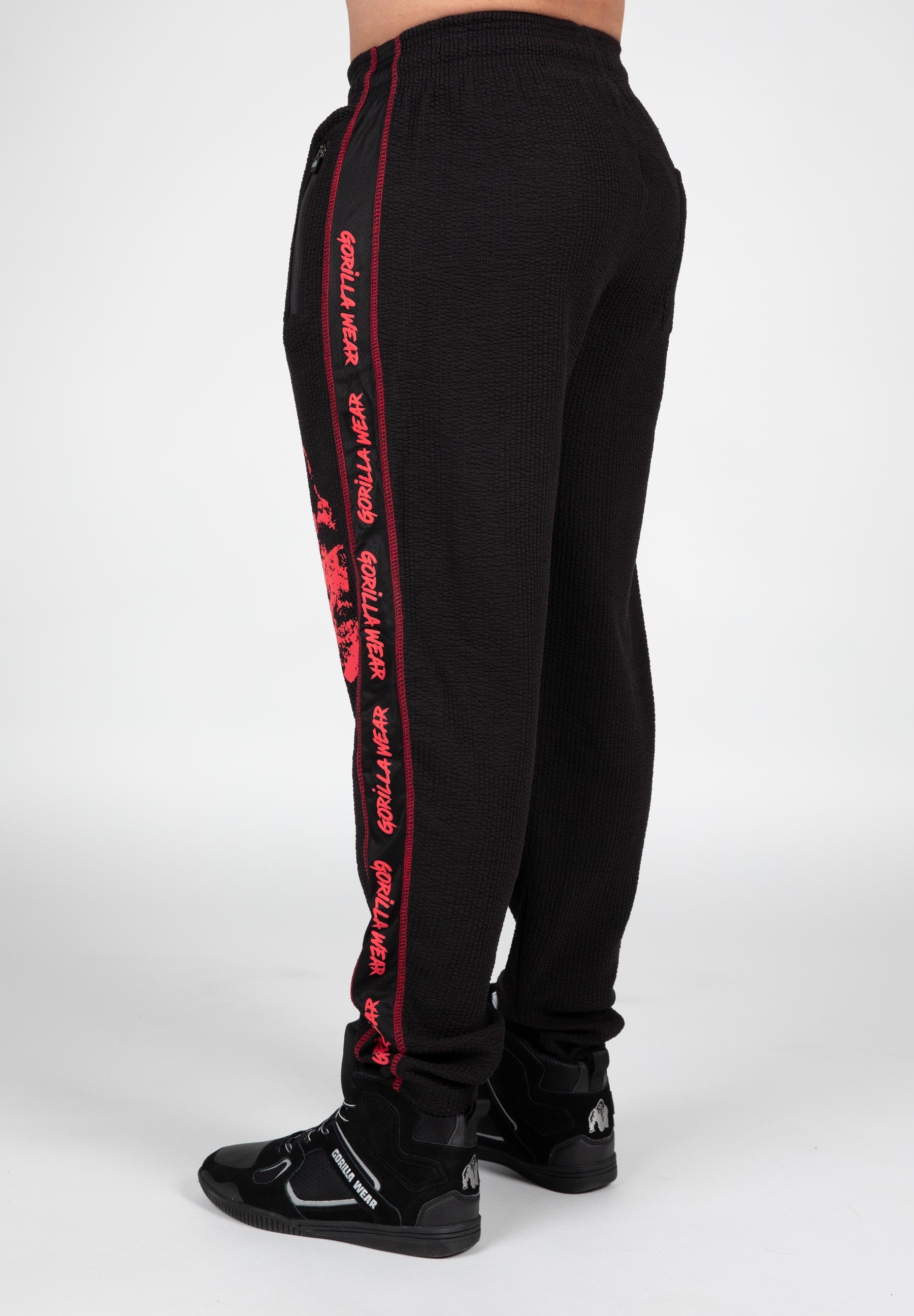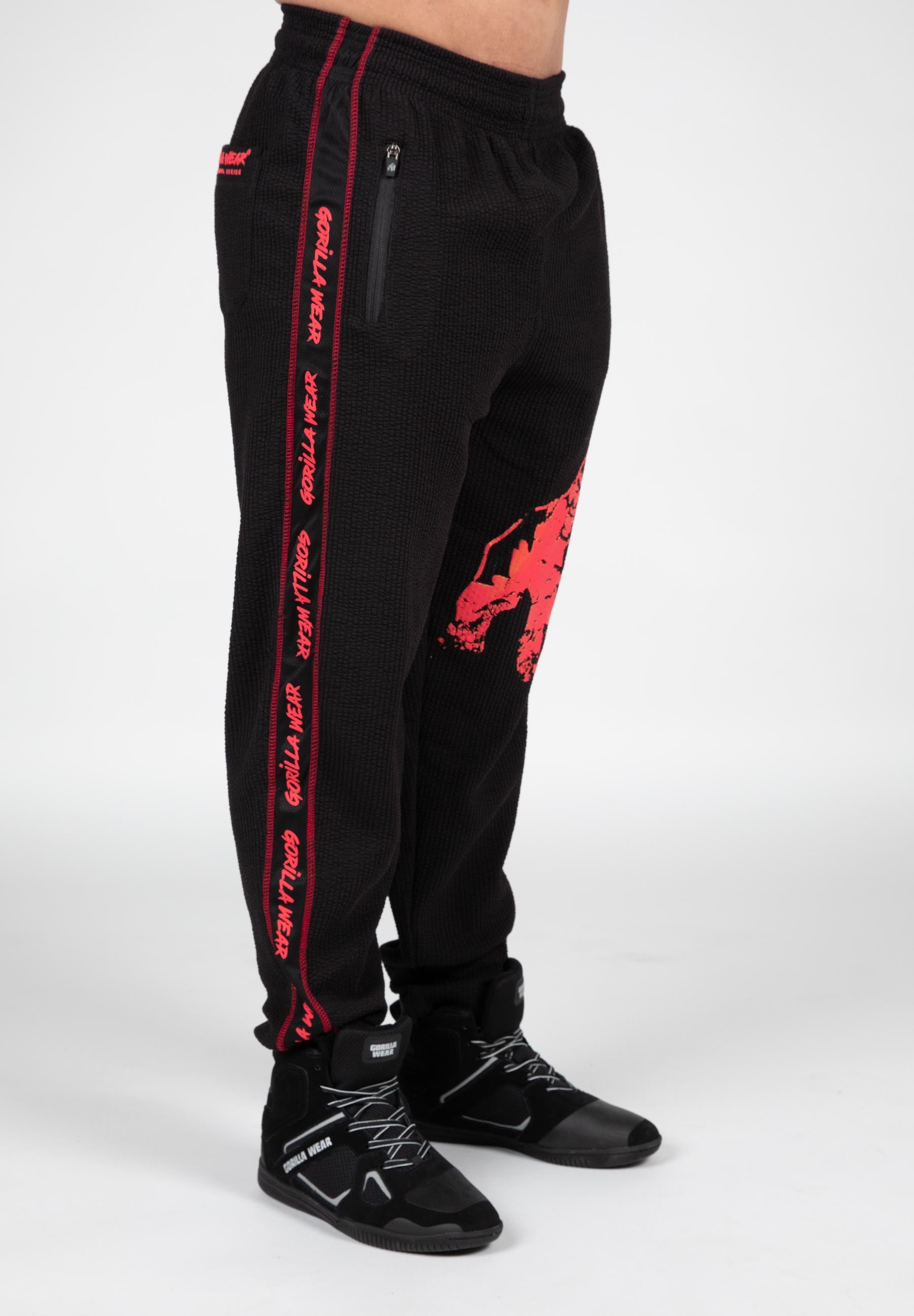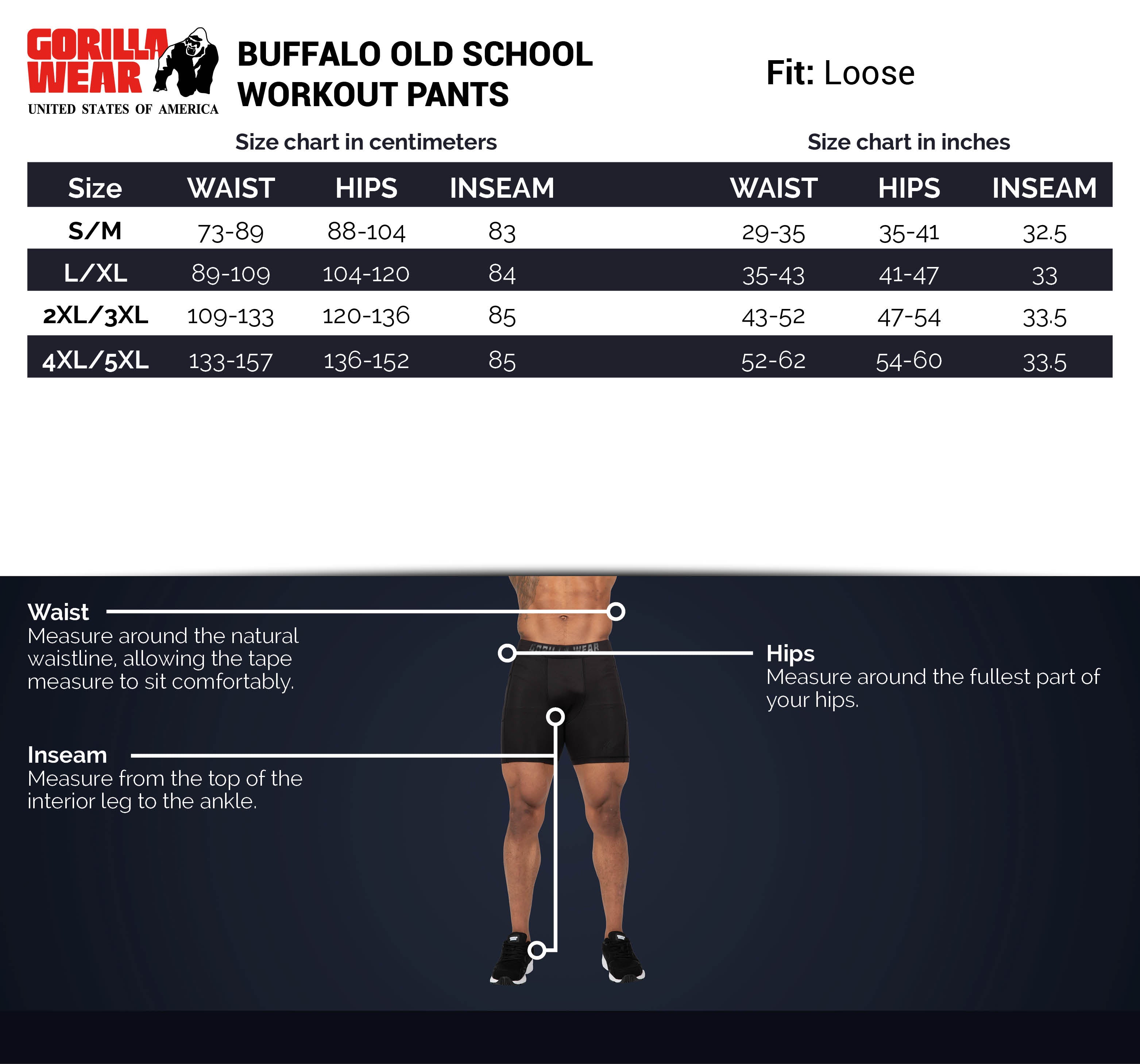 The Buffalo Old School Workout Pants are one of the unique products you'll only find at Gorilla Wear. It is part of a three-piece set, with a matching workout top and workout shorts. The ribbed fabric and striking logos provide a classic and tough look. Each piece of the set features a huge Gorilla Wear logo and old-school taping. It has zippered pockets so you can keep small belongings with you. The loose fit feels comfortable during exercise. This one is for the true Gorilla Wear lovers!