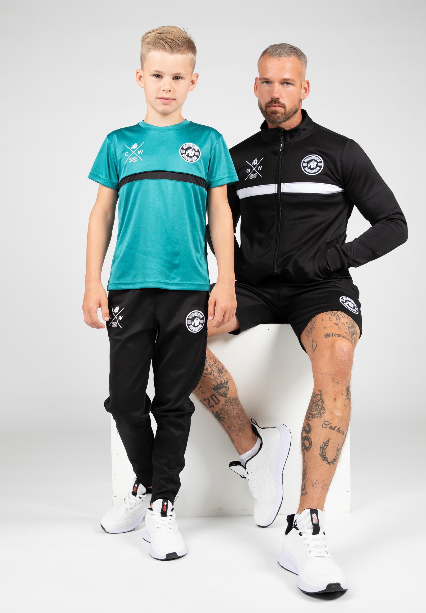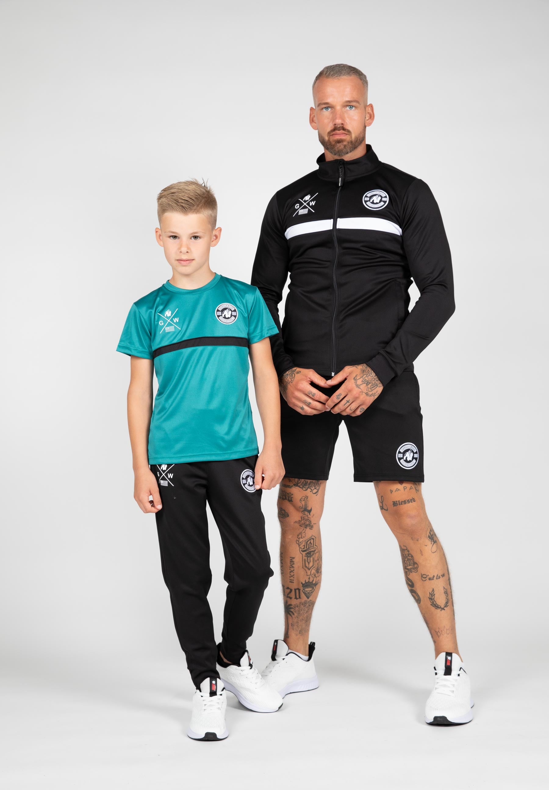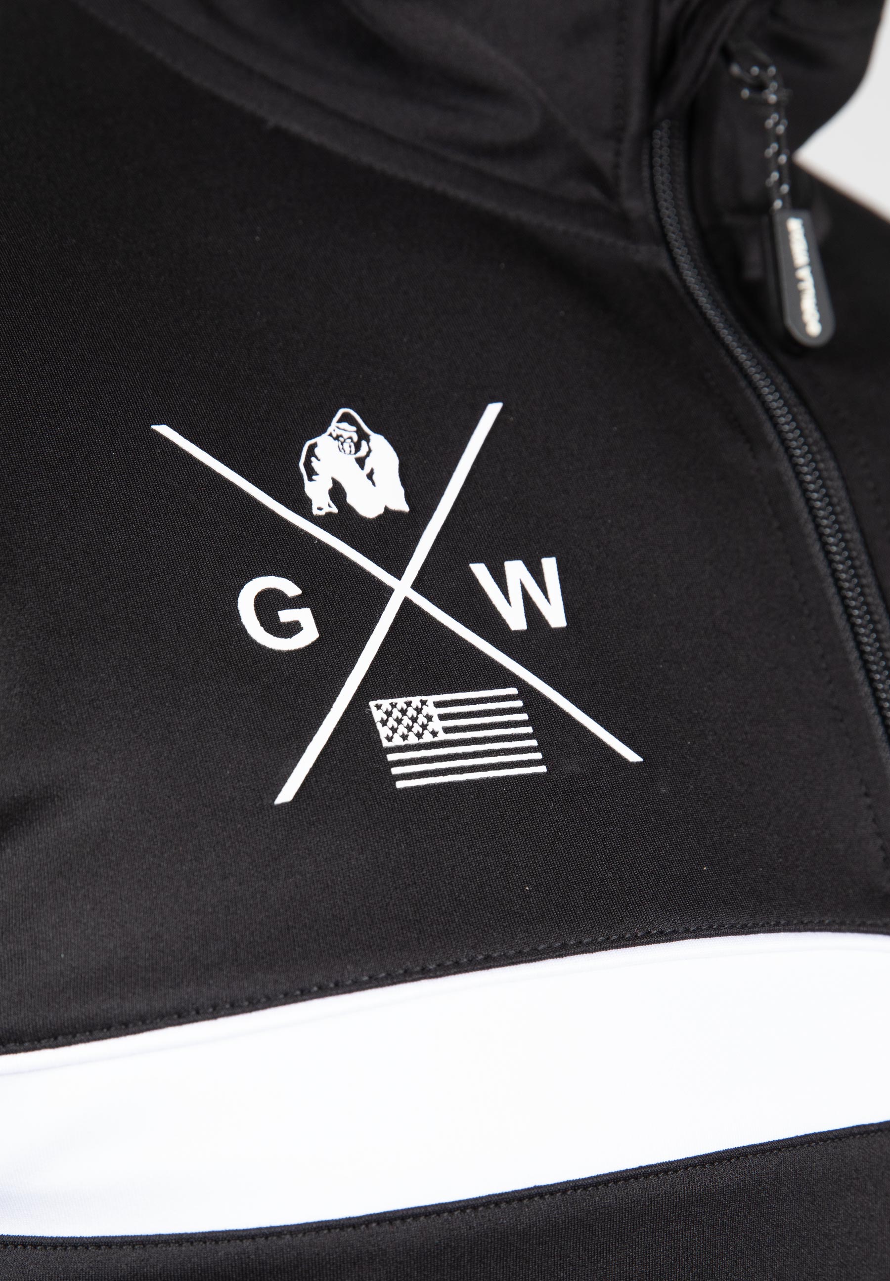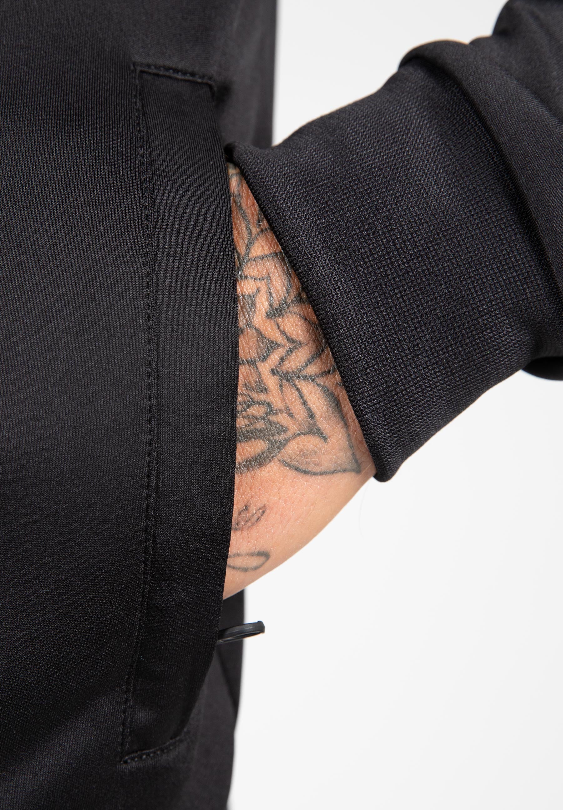 Wearing the Vernon Track Jacket adds a stylish layer to your workout outfit. This regular-fit jacket features two iconic Gorilla Wear logos on the chest, a stand-up collar, and zippered side pockets to store your essentials. Crafted from a blend of fabrics, the track jacket prioritizes your comfort and flexibility during training sessions. Its stretchy nature ensures unrestricted movement, making it the ideal choice for exercise. Its versatility allows you to mix and match with other pieces of the Vernon Set for a complete, coordinated look.